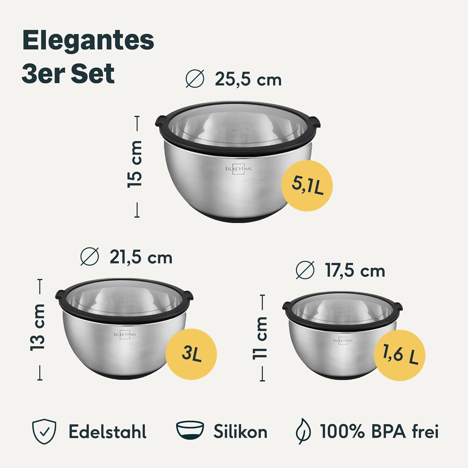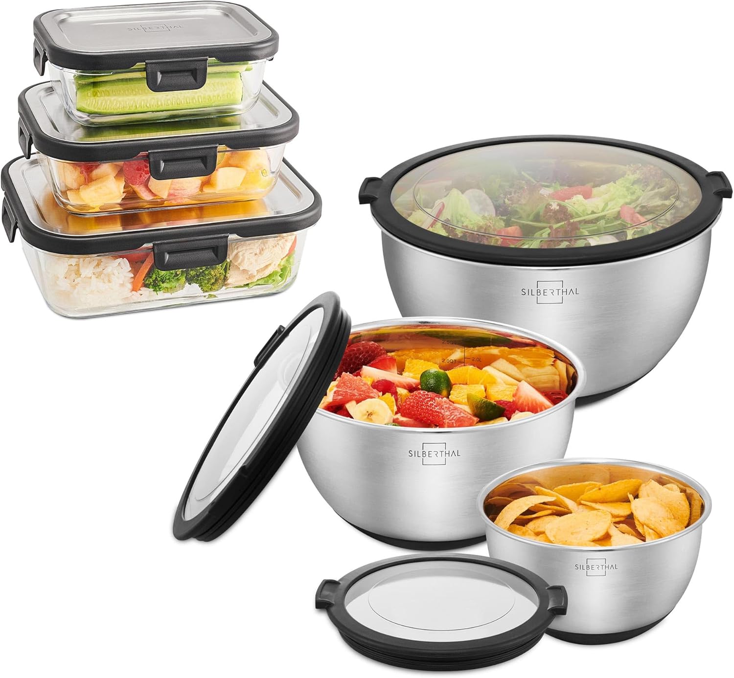 SILBERTHAL Edelstahl Schüssel mit Deckel mit Frischhaltedosen Glas - Meal Prep Set für Unterwegs und Daheim | قیمت یورویی 79.95€