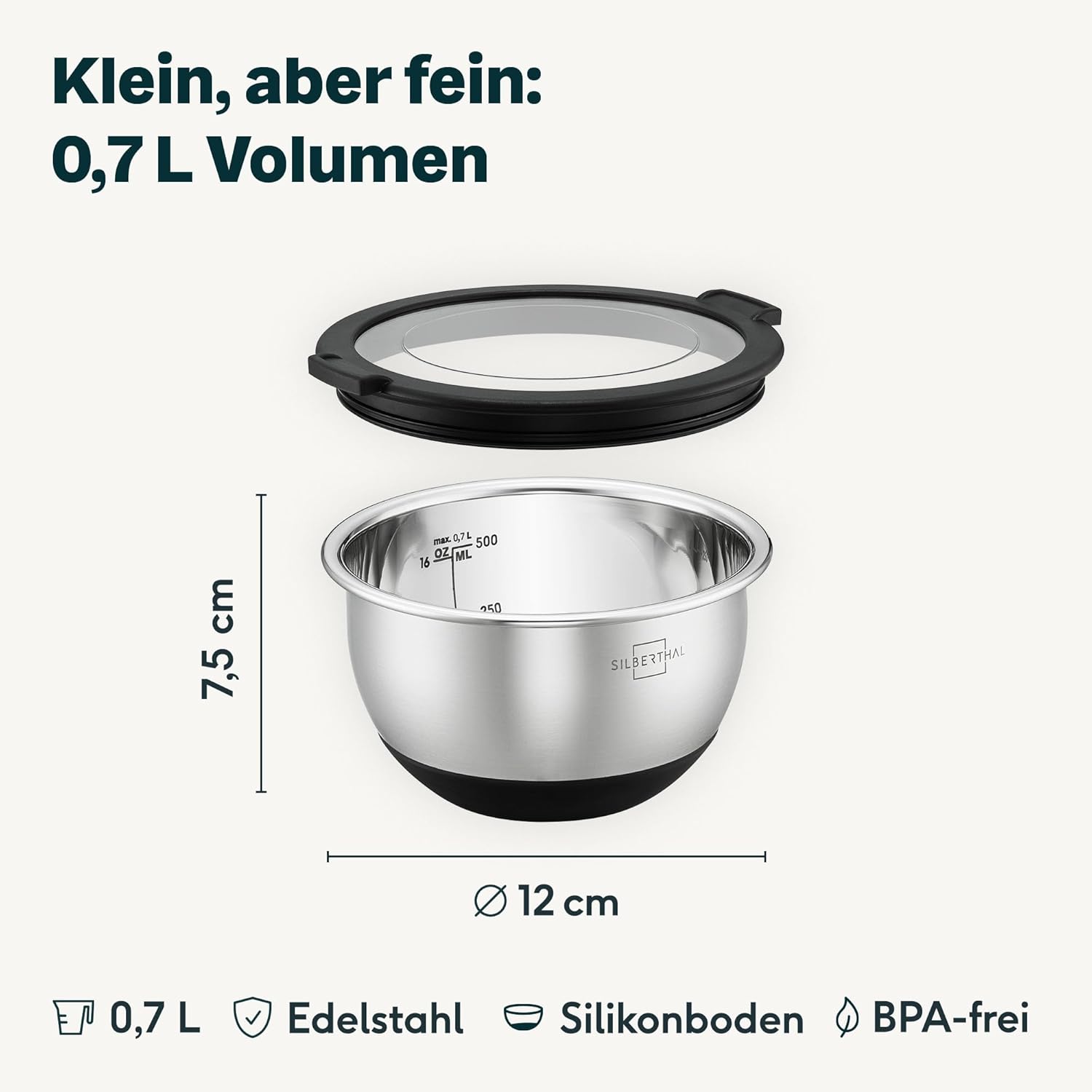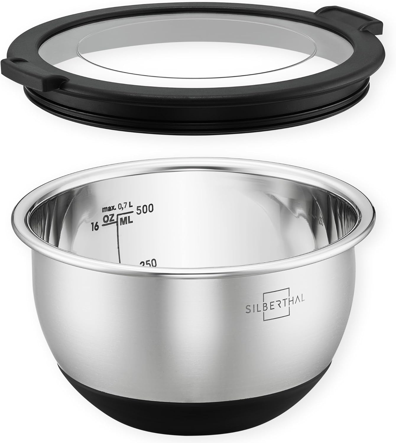 SILBERTHAL Edelstahl Schüssel mit Deckel - 700ml Rührschüsseln zum Servieren, Kochen, Backen, Aufbewahren - Rutschfester Boden | قیمت یورویی 15.95€