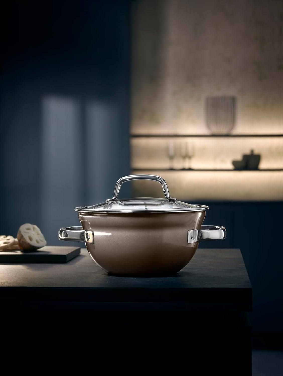 WMF Fusiontec Mineral Kochschüssel mit Glasdeckel 20 cm, kleiner Topf Induktion 2,3l, High-Tech Keramik, kratzfest, braun | قیمت یورویی 126.87€