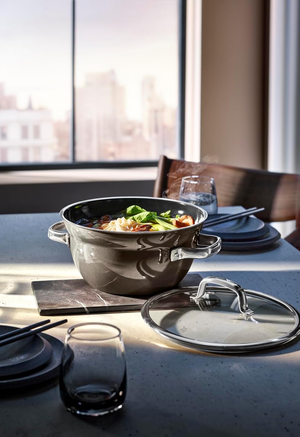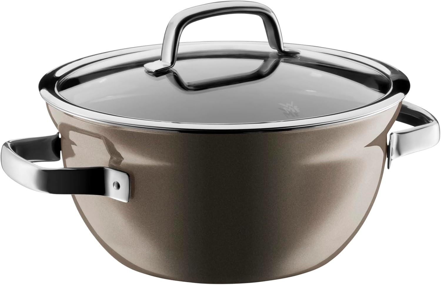 کاسه پخت و پز معدنی WMF Fusiontec با درب شیشه ای 20 سانتی متری، قابلمه کوچک القایی 2.3 لیتری، سرامیک با تکنولوژی بالا، ضد خش، قهوه ای