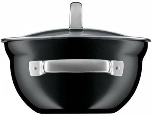 WMF Fusiontec Mineral Kochschüssel mit Glasdeckel 20 cm, kleiner Topf Induktion 2,3l, High-Tech Keramik, kratzfest, schwarz لینک آمازون : https://www.amazon.de/dp/B079NHBRDY?th=1&psc=1 محتویات: ۱ عدد کاسه/قابلمه گرد با درب ۲۰ سانتیمتر (حجم ۲.۳ لیتر، ارتفاع ۱۵.۸ سانتیمتر) - ایدهآل برای اجاق گازهای با قطر ۱۸ سانتیمتر - شماره کالا: ۰۵۱۹۳۱۵۲۹۰ جنس: FUSIONTEC، یک سوپرآلیاژ ساخته شده از مواد بادوام و ضد خوردگی (معدنی طبیعی). فولاد ضد زنگ. قابل شستشو در ماشین ظرفشویی. مقاوم در برابر حرارت تا ۲۵۰ درجه سانتیگراد (۱۸۰ درجه سانتیگراد با درب). ساخت آلمان این قابلمه برای انواع اجاق گاز، از جمله اجاق القایی، مناسب است. پایه فولادی-آهنی آن به لطف حفظ بهینه گرما، در طول پخت و پز در مصرف انرژی صرفهجویی میکند. دستههای توخالی آن هنگام لمس خنک میمانند. سطح صاف و بدون نیکل، سخت، مقاوم در برابر برش و سایش است، طعم اصیل غذا را حفظ میکند و برای پخت و پز کم چرب مناسب است. این کاسههای پخت و پز همچنین برای سرو سر میز مناسب هستند.