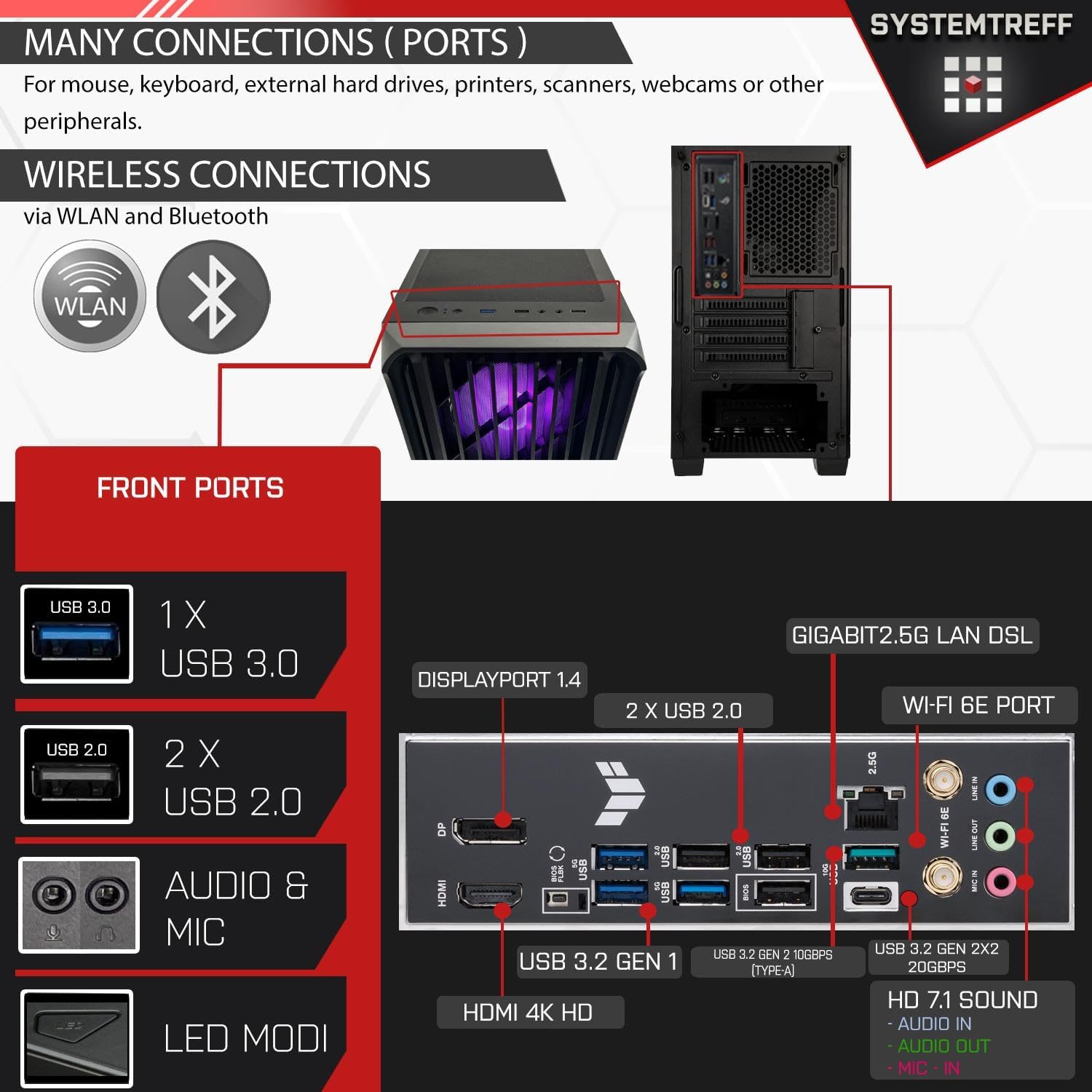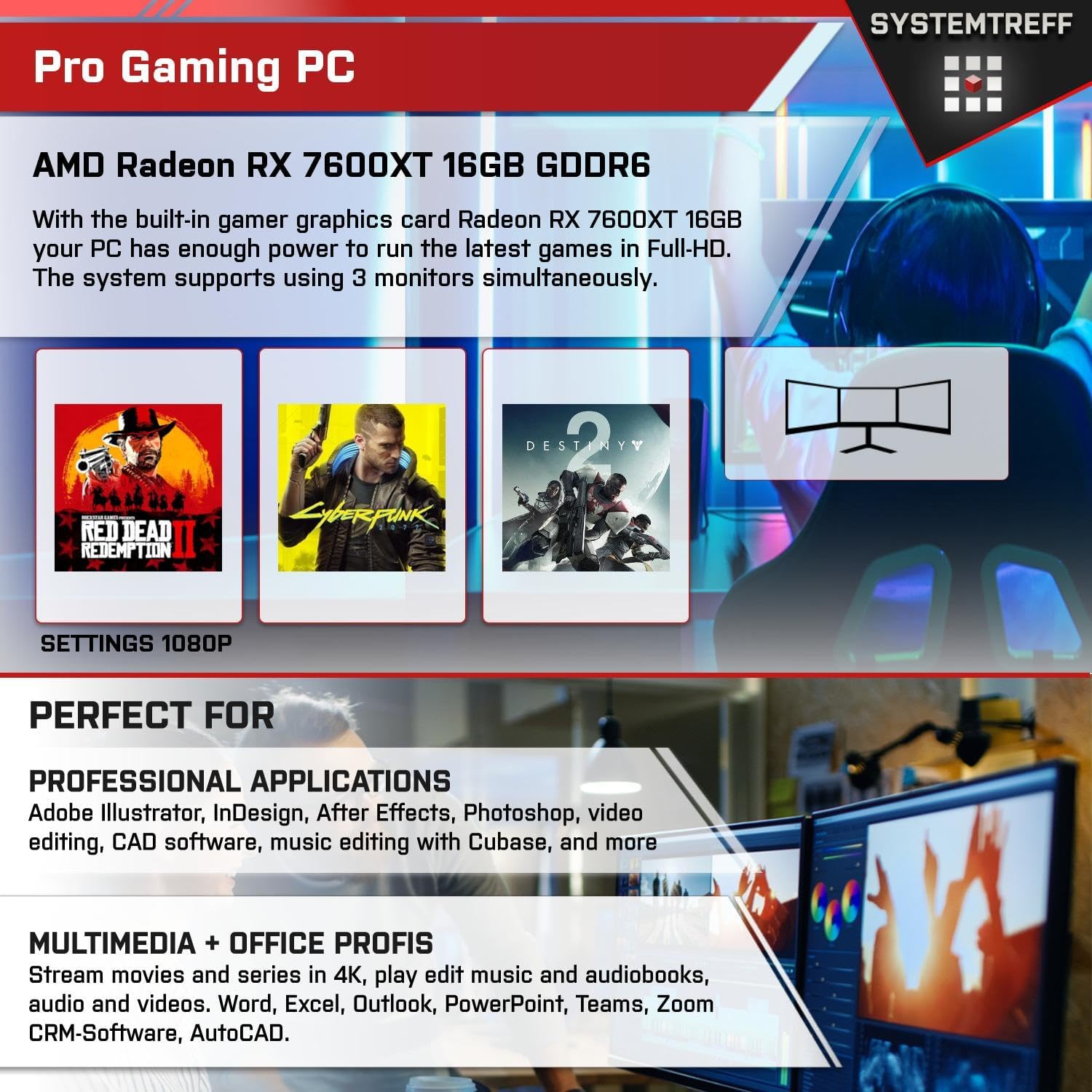 SYSTEMTREFF High-End Gaming PC AMD Ryzen 5 7600X 6x5.3GHz | Nvidia RTX 5060 TI 8GB DX12 | 1TB M.2 NVMe | 32GB DDR5 RAM | Windows 11 | WLAN Desktop Computer Rechner für Gamer, Zocker & Streamer AMD Ryzen 5 7600X 32.0 GB 1000.0 GB Nvidia GeForce RTX 5060 TI 8GB GDDR7 Technik:(4K,GDDR7,256bit,PCIe 5.0,DX12,DLSS 4) | قیمت یورویی 1239.9€