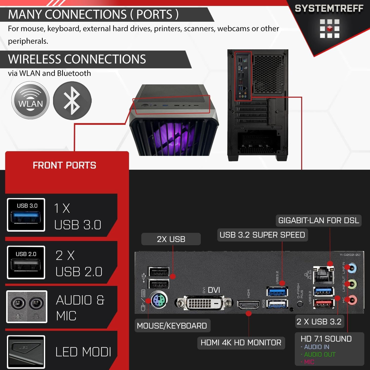 SYSTEMTREFF Gaming PC AMD Ryzen 5 5600X 6x4.6GHz | Nvidia RTX 3060 12 GB DX12 | 1TB M.2 NVMe | 32GB DDR4 RAM | Windows 11 | WLAN Desktop Computer Rechner für Gamer, Zocker & Streamer AMD Ryzen 5 5600X 32.0 GB 1000.0 GB NVIDIA GeForce RTX 3060 12GB Technik:(GDDR6,192bit,PCIe 4.0,DX12,DLSS) | قیمت یورویی 899.9€