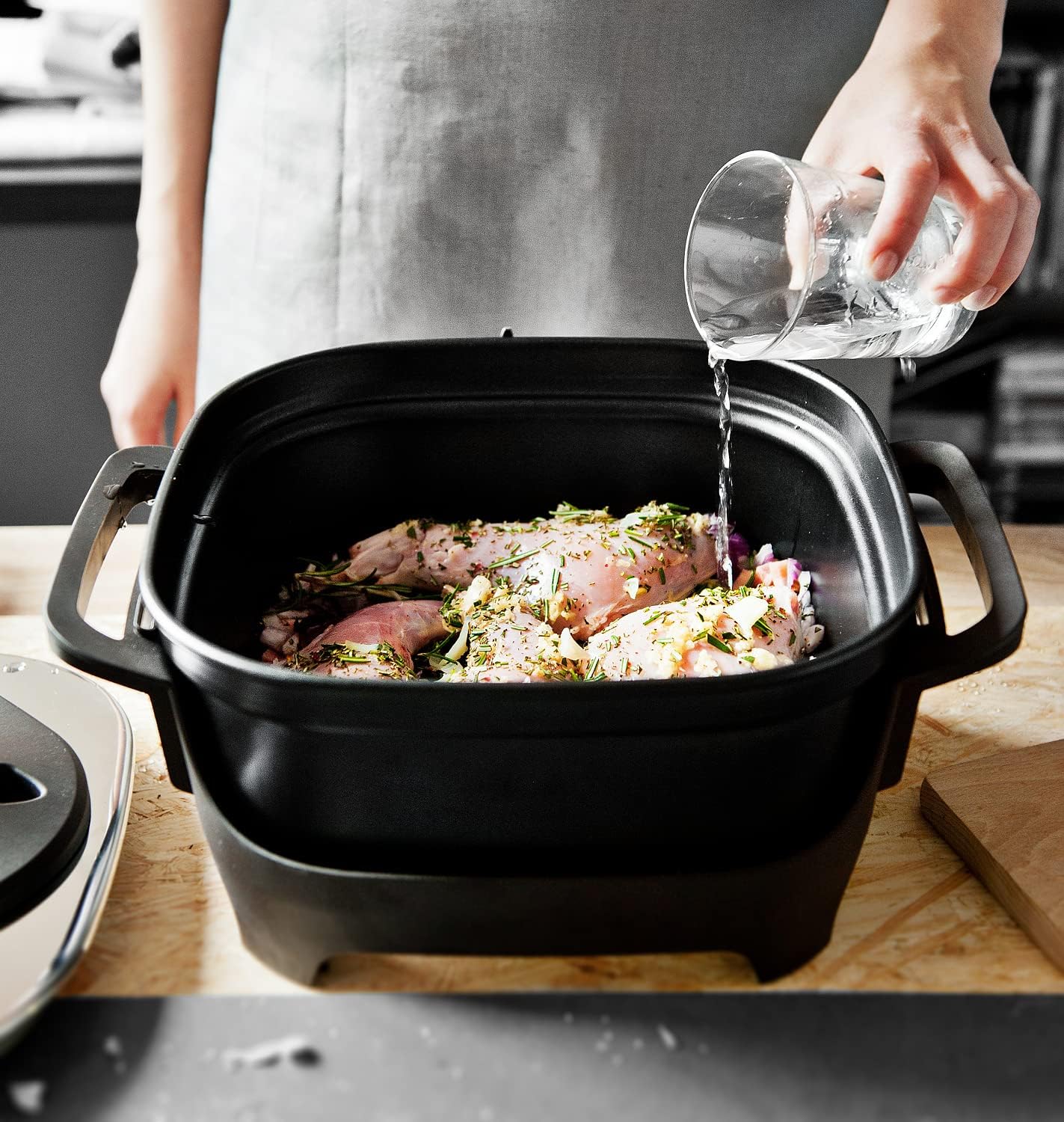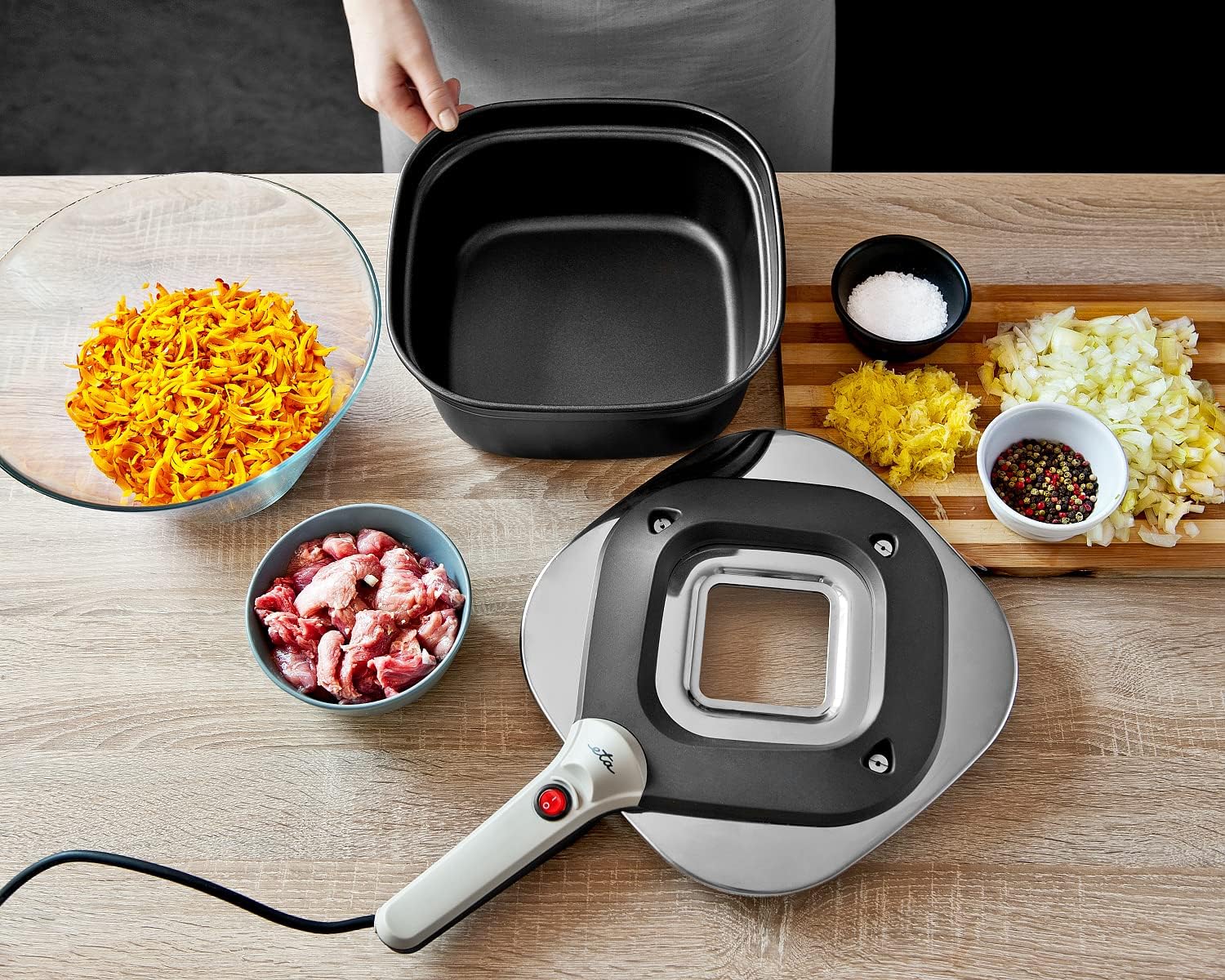 Multifunktionale Nutzung - Kochen, Backen, Grillen Die Erwärmung ist schnell und effizient dank des eingebauten Heizelements im Deckel. Bis zu 80 % energieeffizienter als ein herkömmlicher Ofen Der Behälter und der Deckel sind mit einer Antihaftbeschichtung für eine einfache Reinigung ausgestattet. Sicherheitsverriegelung gegen unsachgemäße Montage. Umfangreiches Zubehörangebot. Ein Rezeptbuch in deutscher Sprache gibt es nur Digital. | قیمت یورویی : 118.5€