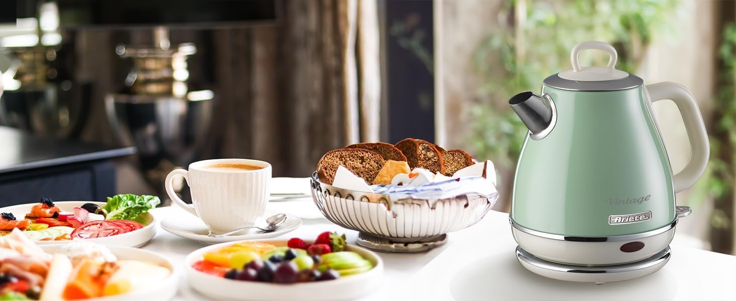 کتری برقی Vintage 2868 برند آریته، با طراحی الهام گرفته از سبکهای کلاسیک ایتالیایی و قدرت 2000 وات، آب را در کمترین زمان به جوش میآورد. ظرفیت بالای 1.7 لیتری، استفاده از این دستگاه را برای خانوادهها و دفاتر کاری بسیار مناسب کرده است. رنگ سبز آرام و دلنشین دستگاه، آشپزخانه را به فضایی گرم و صمیمی تبدیل میکند. این مدل با امکاناتی همچون پایه چرخشی 360 درجه و سیستم خاموشی خودکار، راحتی و امنیت بیشتری در استفاده فراهم میسازد.