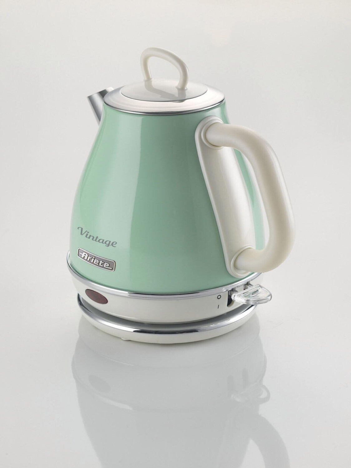 کتری برقی آریته مدل Vintage 2868 با رنگ سبز کلاسیک، ترکیبی از زیبایی رترو و سرعت جوش بالاست. این مدل با ظرفیت 1.7 لیتری و طراحی ارگونومیک، انتخابی کاربردی برای مصارف روزانه است.