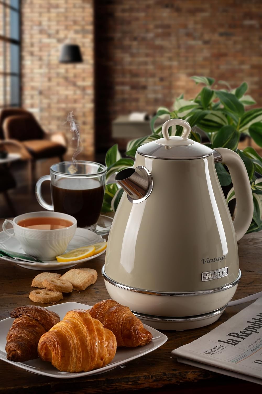کتری برقی آریته مدل 2869 با طراحی نوستالژیک و رنگ زیبا ، محصولی زیبا و کاربردی برای جوشاندن سریع و ایمن آب در آشپزخانه است.