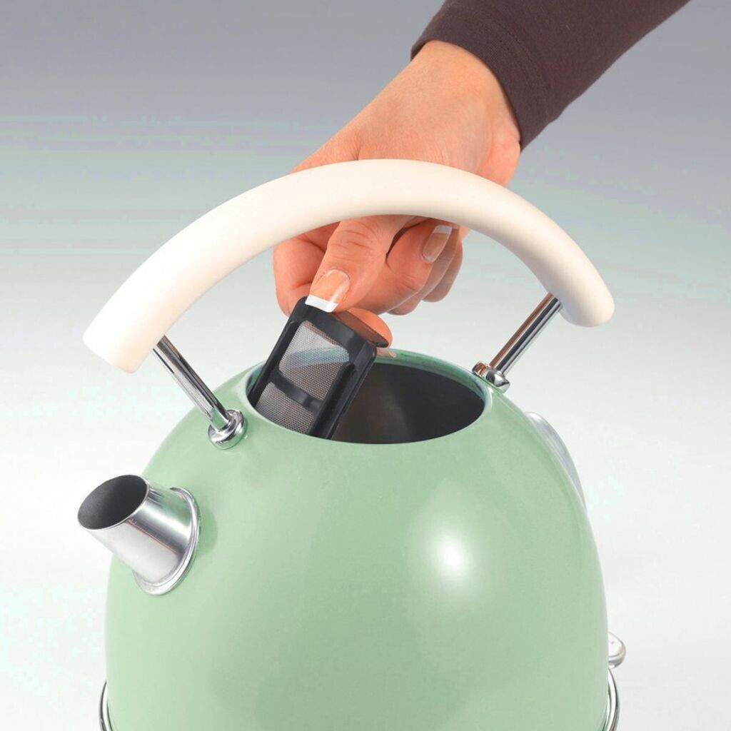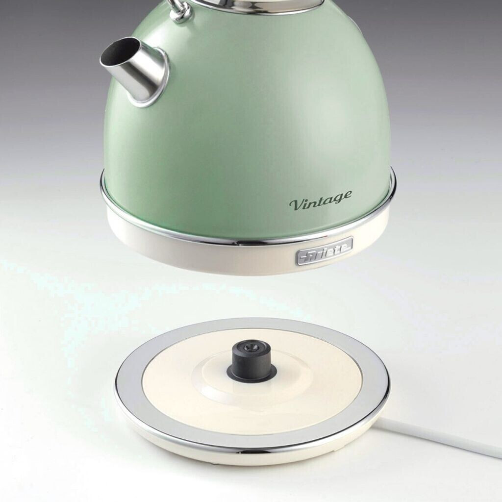 کتری برقی Ariete مدل Vintage 2877 با طراحی رترو و رنگ سبز ، گزینهای زیبا و کارآمد برای جوش آوردن سریع آب در آشپزخانههای خانگی است. ترکیبی از ظاهر کلاسیک و عملکرد مدرن را در این دستگاه خواهید یافت.