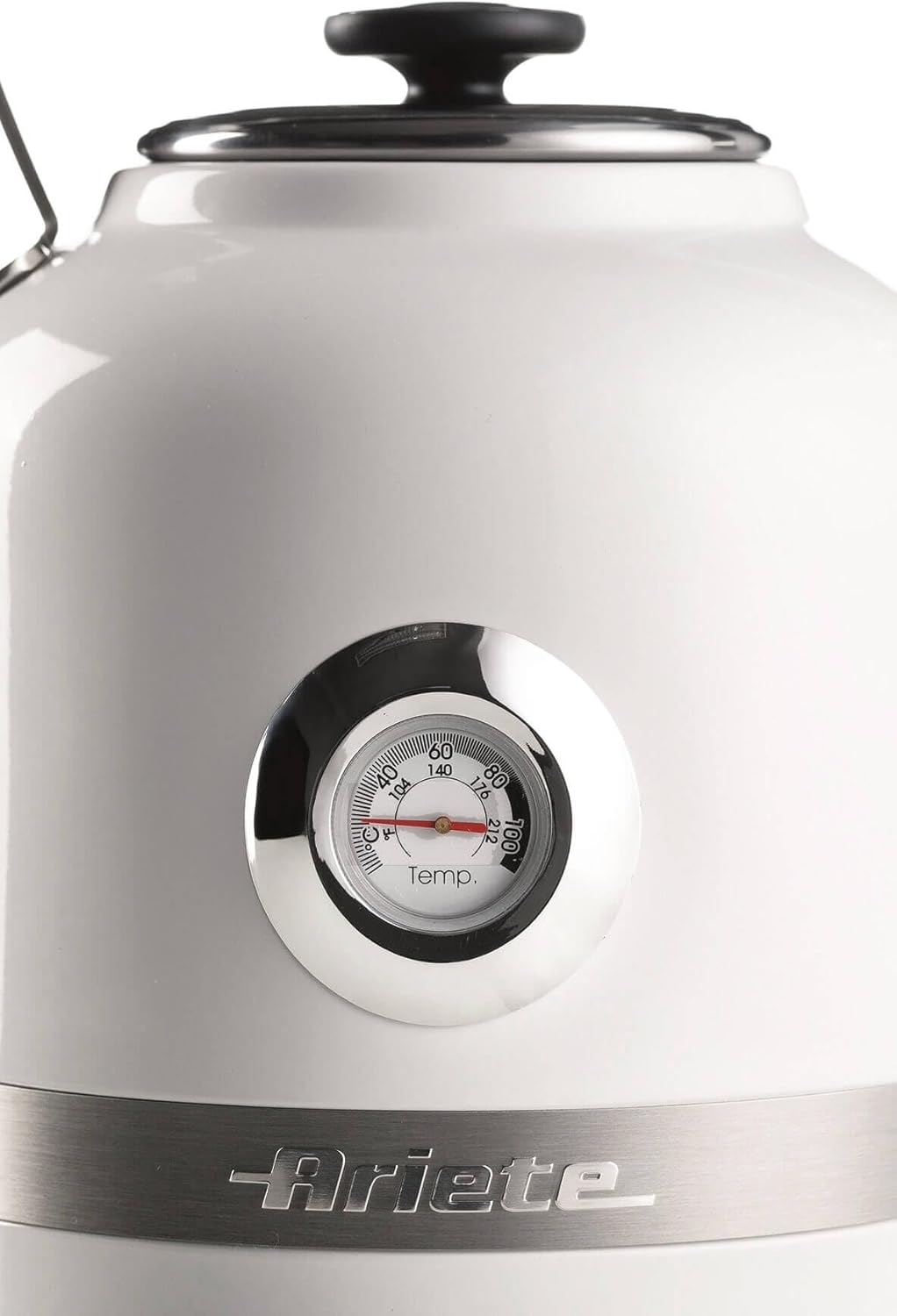کتری Ariete مدل 2854 از سری Moderna با رنگ زیبا و بدنه استیل ضد زنگ، گزینهای شیک و ایمن برای آشپزخانههای امروزی است.