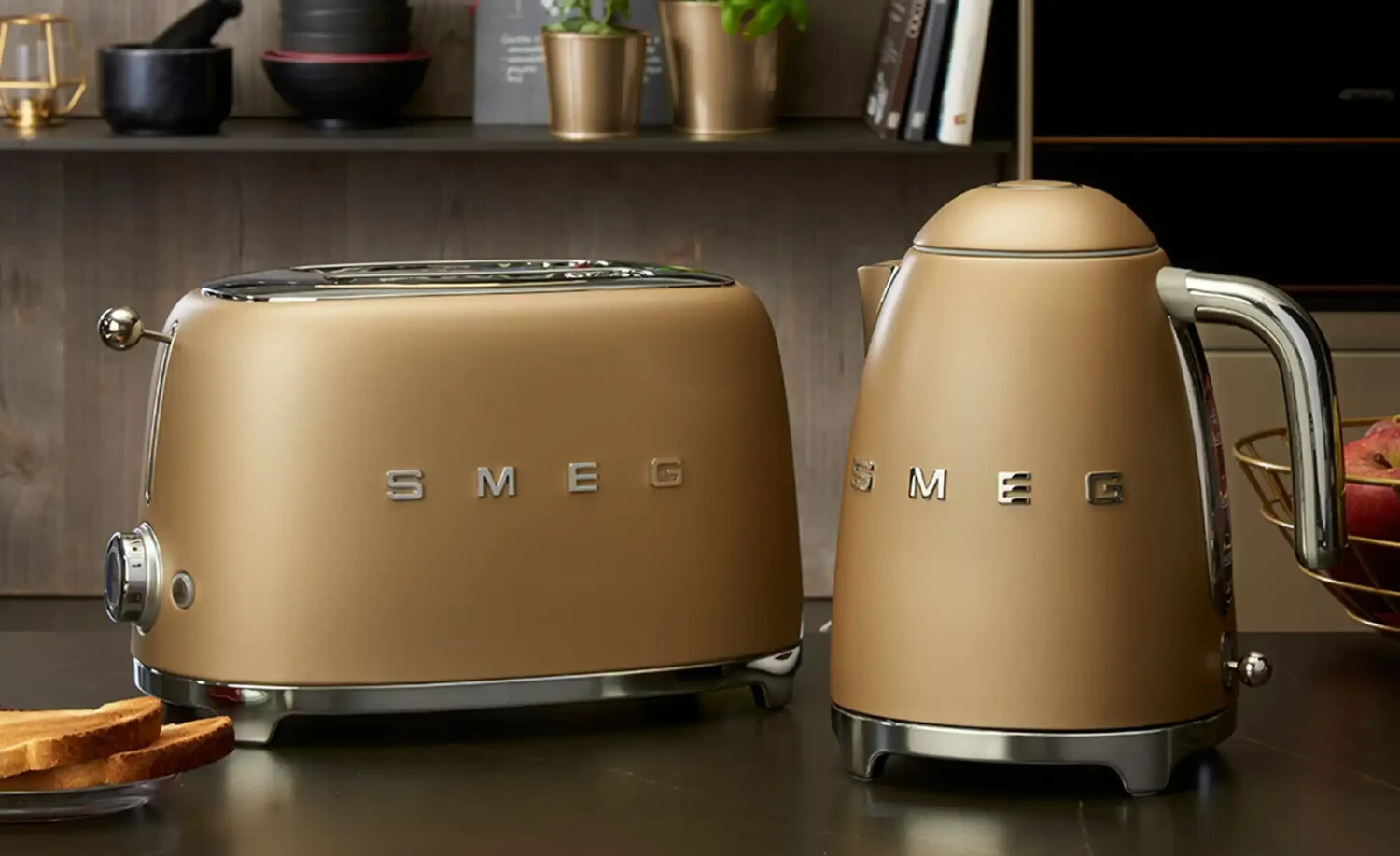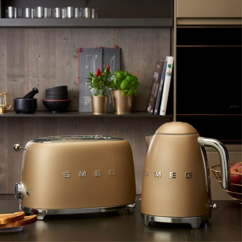 کتری اسمگ مدل KLF03CHMEU با ظاهر درخشان شامپاینی رنگ ، یکی از خاصترین محصولات سری رترو برند اسمگ است.