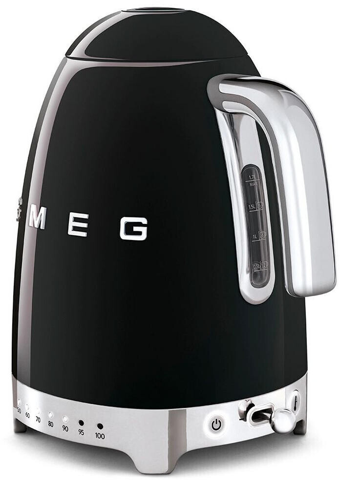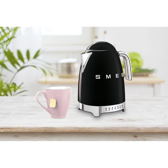کتری برقی اسمگ مدل KLF04BLEU از سری محصولات قابل تنظیم این برند ایتالیایی است که با طراحی کلاسیک، رنگ مشکی براق و ظرفیت ۱.۷ لیتر عرضه میشود. این مدل مجهز به قابلیت تنظیم دما در ۷ سطح (۵۰ تا ۱۰۰ درجه سانتیگراد)، حالت گرم نگهدار، پایه چرخان ۳۶۰ درجه، نمایشگر دما و بدنهای از فولاد ضد زنگ است. ترکیب ظاهر رترو و عملکرد دیجیتال، آن را به یکی از حرفهایترین کتریهای بازار تبدیل کرده است.