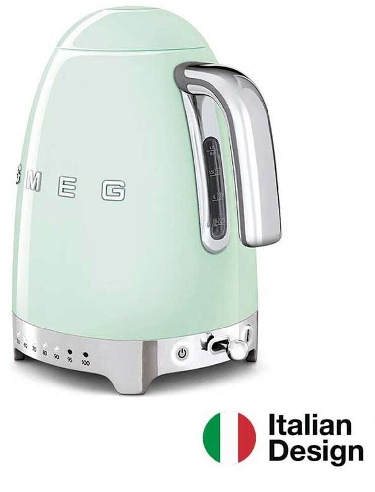 کتری برقی اسمگ مدل KLF04 از سری محصولات قابل تنظیم این برند ایتالیایی است که با طراحی کلاسیک، رنگ زیبا و ظرفیت ۱.۷ لیتر عرضه میشود. این مدل مجهز به قابلیت تنظیم دما در ۷ سطح (۵۰ تا ۱۰۰ درجه سانتیگراد)، حالت گرم نگهدار، پایه چرخان ۳۶۰ درجه، نمایشگر دما و بدنهای از فولاد ضد زنگ است. ترکیب ظاهر رترو و عملکرد دیجیتال، آن را به یکی از حرفهایترین کتریهای بازار تبدیل کرده است.