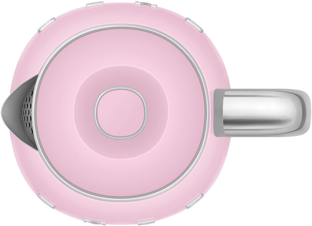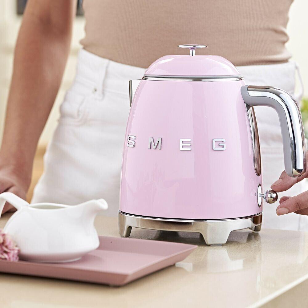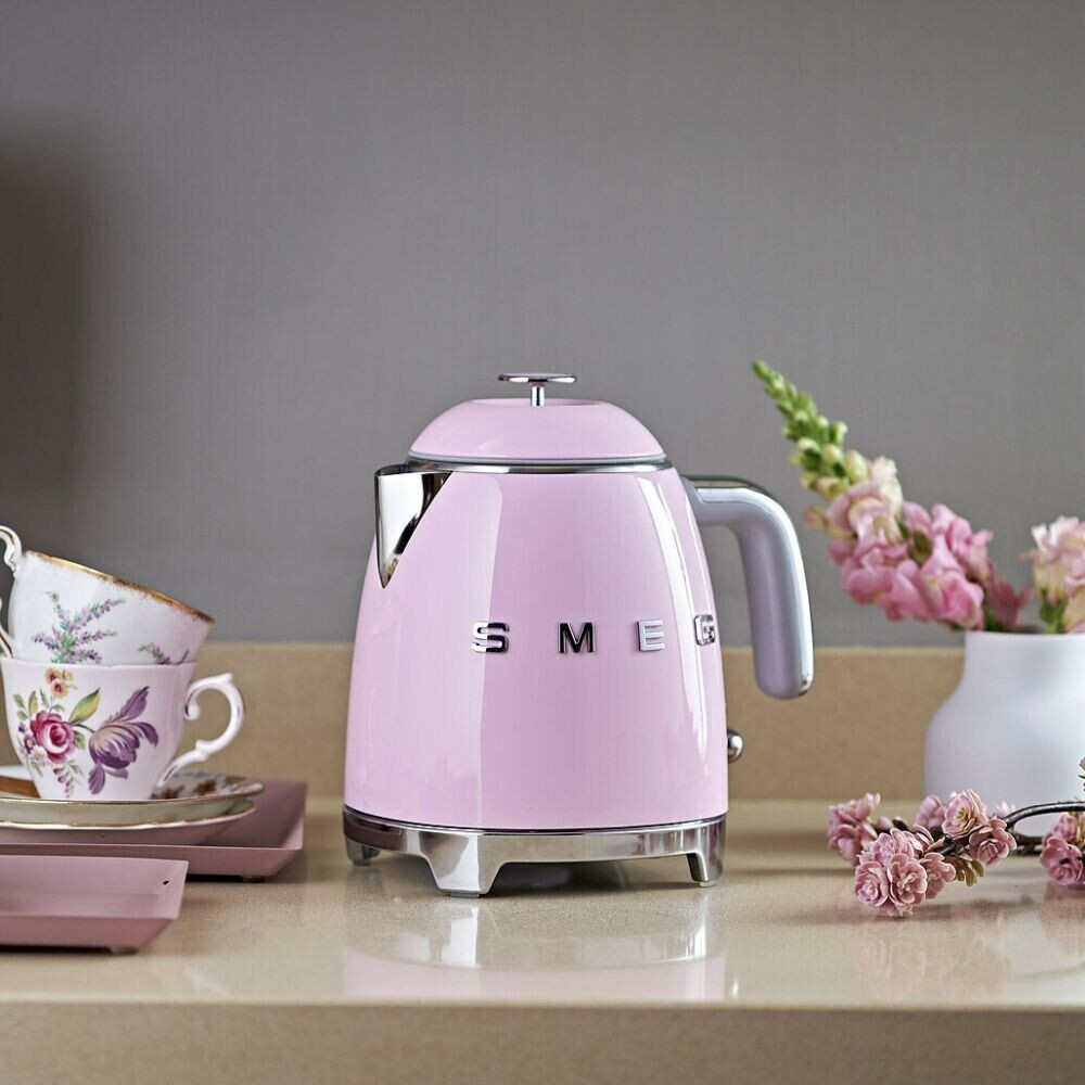 کتری برقی اسمگ مدل KLF05، محصولی از برند ایتالیایی SMEG با طراحی کلاسیک دهه 50 میلادی و رنگ صورتی، جلوهای خاص به آشپزخانه میبخشد.