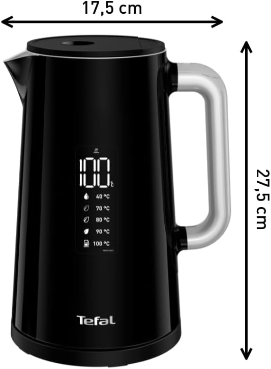 Tefal KO8508 Smart'n Light Elektrischer Wasserkocher | Temperatureinstellung | Tee | Digitalanzeige | 30 Min. Warmhaltefunktion | Auto-Off | 1,7 L Fassungsvermögen | Doppelwandkonstruktion | Schwarz | قیمت یورویی 86.95€