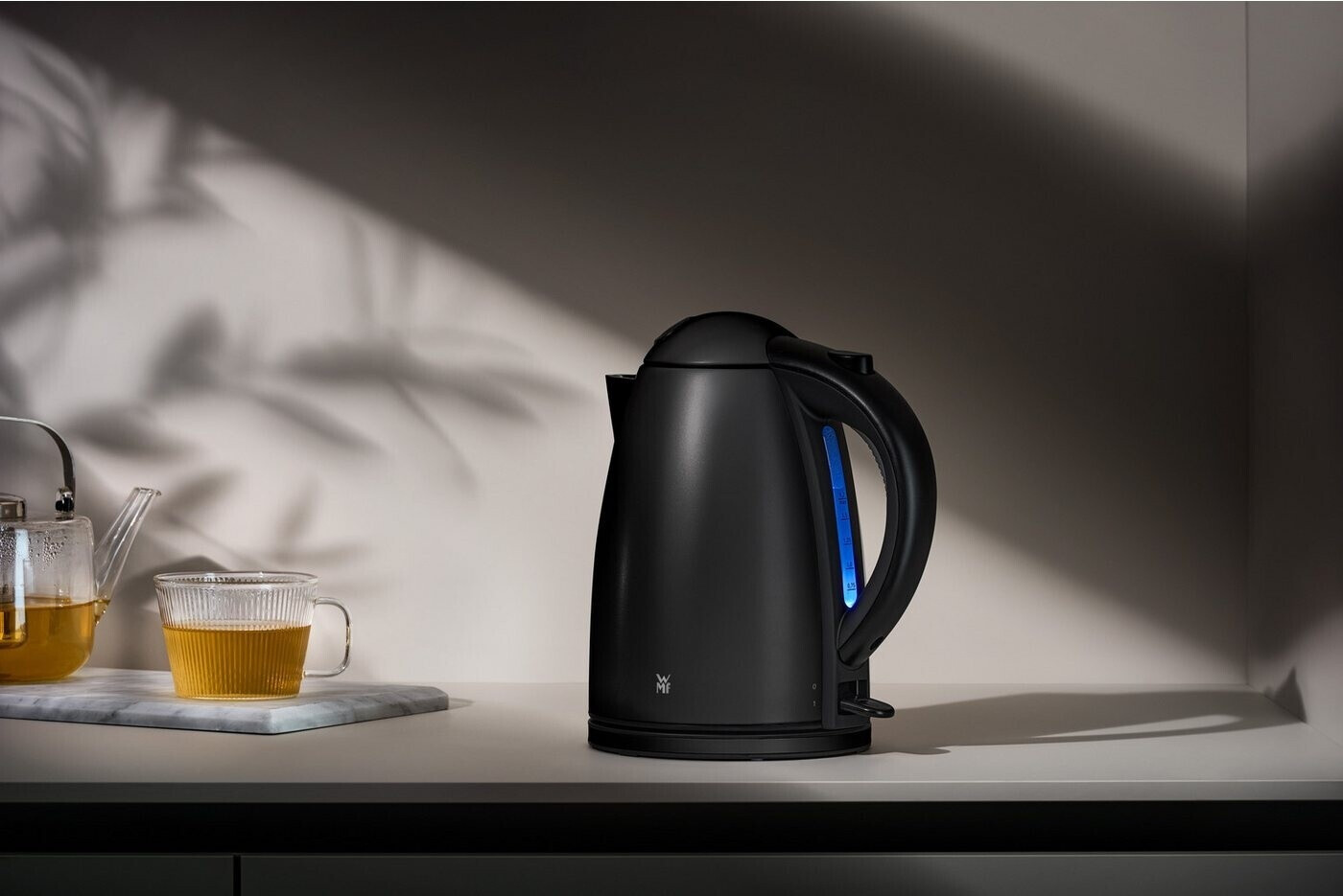 کتری برقی WMF Stelio Deep Black با ظرفیت ۱.۷ لیتر، انتخابی هوشمندانه برای کسانی است که به ترکیب زیبایی، عملکرد و دوام اهمیت میدهند. طراحی این مدل با بدنهی استیل ضدزنگ Cromargan® در کنار پلاستیک مشکی مات، جلوهای مینیمال و شیک به آشپزخانه میدهد.
