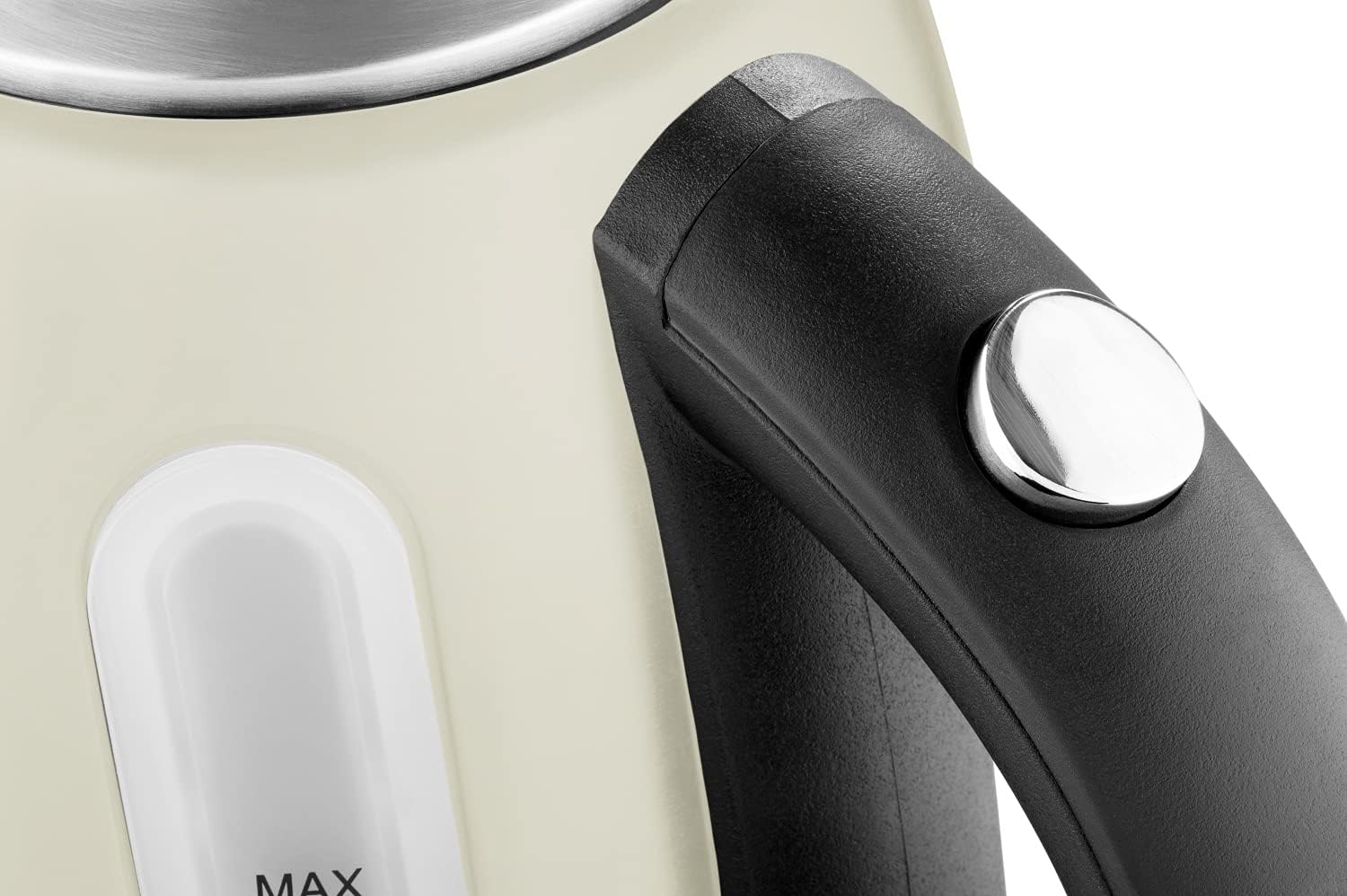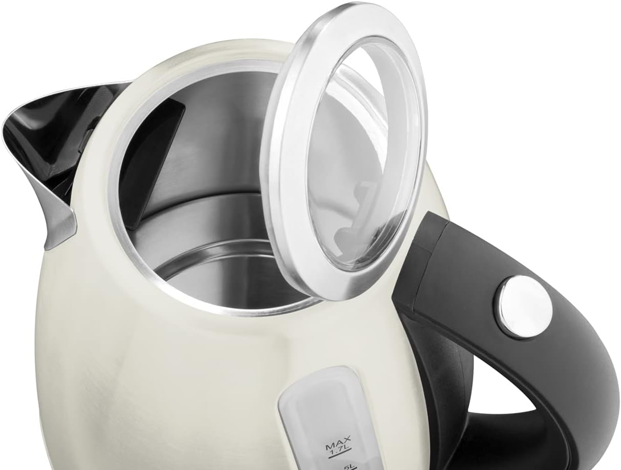 Ela ist ein eleganter Edelstahl-Wasserkocher in stilvollem weißem Design, der perfekt in jedes moderne Zuhause passt. Mit einer Kapazität von bis zu 1,7 Litern kann er auf einmal Wasser erhitzen und dank einer Leistung von bis zu 2.100 W ist er schnell betriebsbereit. Leistungsaufnahme von 2.100 W für schnelles Erhitzen des Wassers. Die Bedienung ist sehr einfach. Sie öffnen den Deckel durch Drücken der Taste am Griff. Die Sicherheit wird doppelt berücksichtigt - das Gerät schaltet sich automatisch ab, wenn der Siedepunkt erreicht ist, und es verfügt über einen Sicherheitstemperaturbegrenzer, d.h. wenn der Stromkreis überlastet wird, wird er unterbrochen und das Gerät wird geschützt. Das Heizelement befindet sich unter dem Edelstahlboden des Wasserkochers. Der Boden verfügt auch über einen Platz zum Aufbewahren des Netzkabels. Eine selbstverständliche Funktion ist ein Filter gegen Kalkablagerungen. | قیمت یورویی : 32.34€