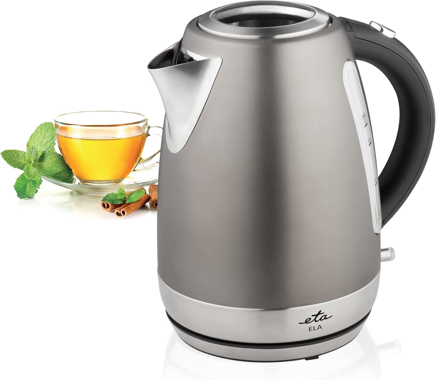 ETA Wasserkocher Ela I 1,7l I 2100 W I Verstecktes Heizelement I Wasserstandsanzeige I Filtersieb I Automatische Abschaltung