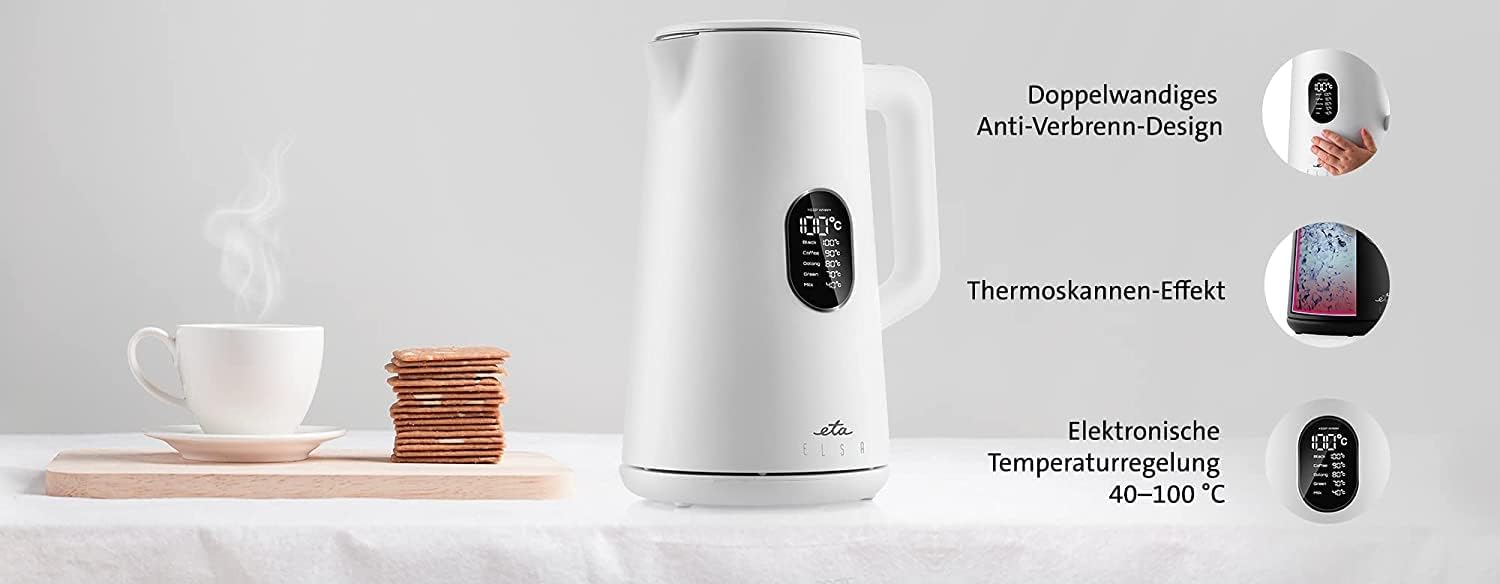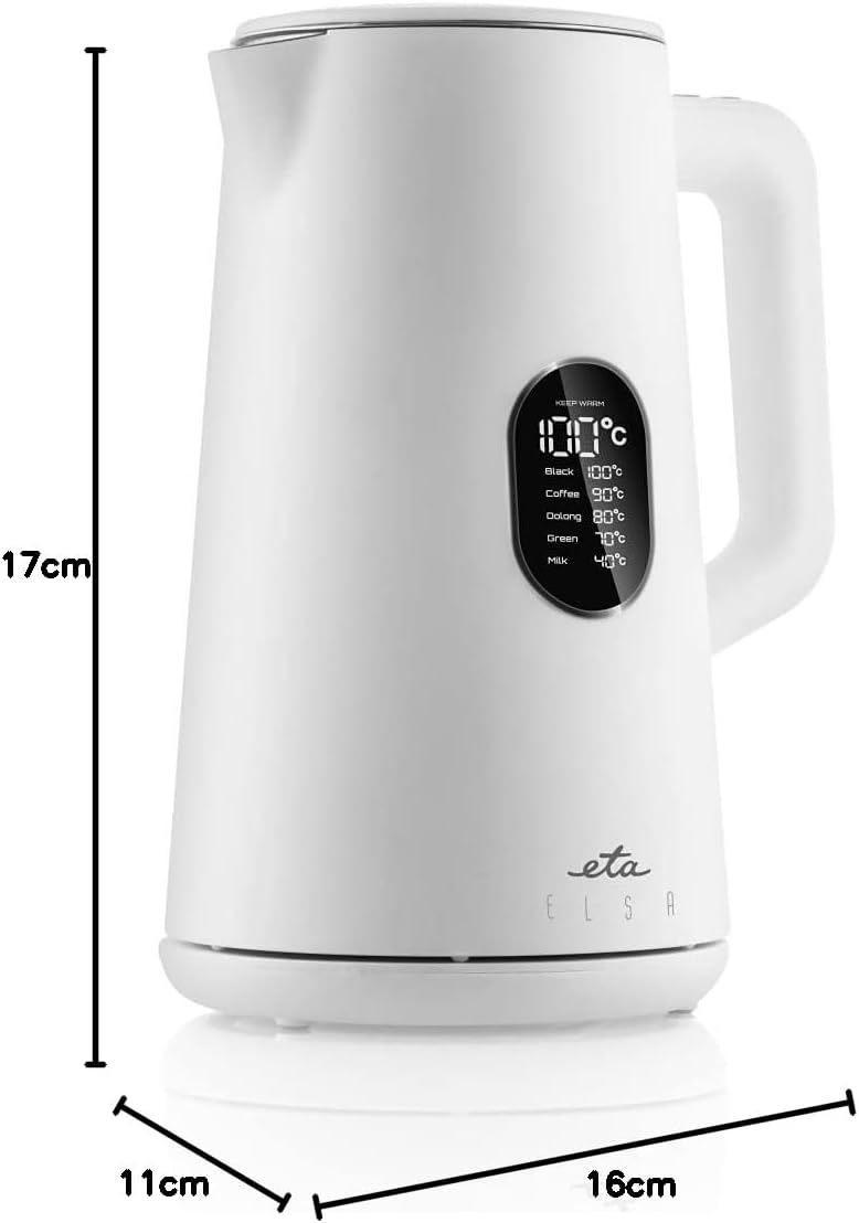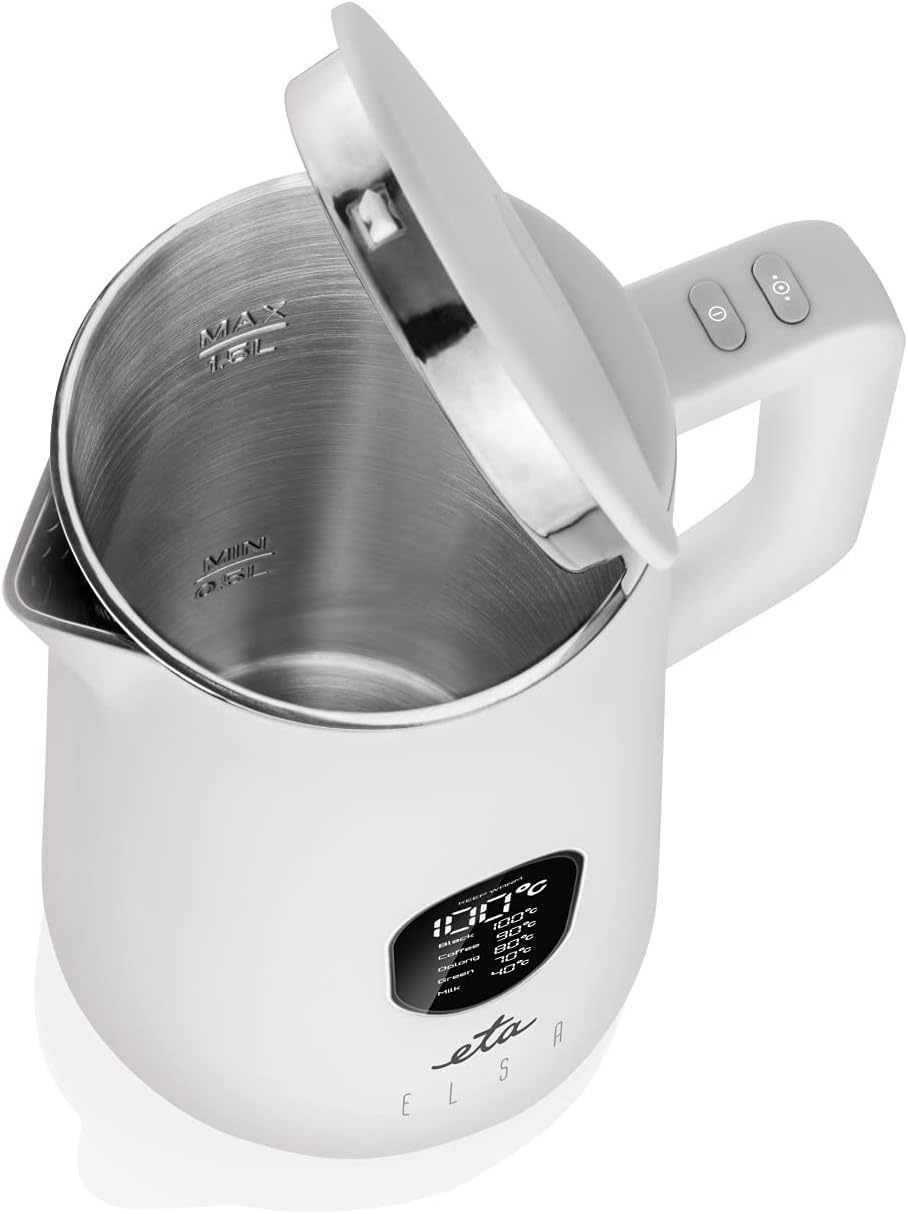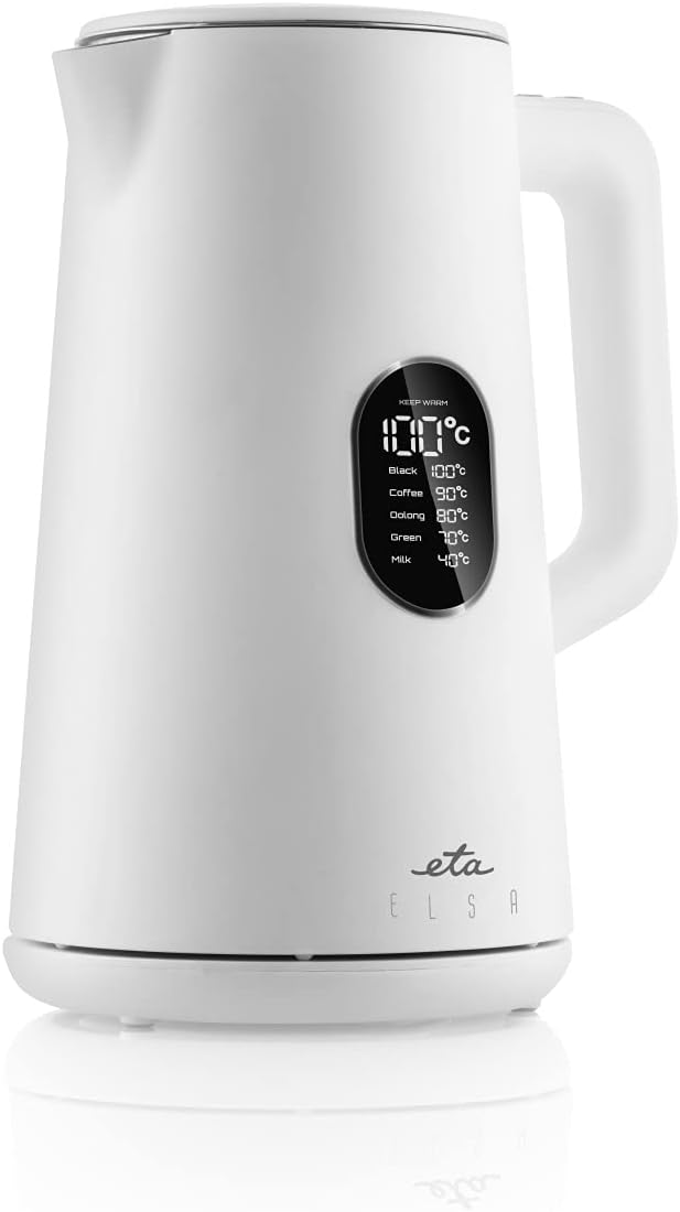 ETA Wasserkocher Elsa mit Temperatureinstellung- 1,5l, 1800W, LED-Display, 40-100°C, Warmhaltefunktion, Weiß | قیمت یورویی 58.52€