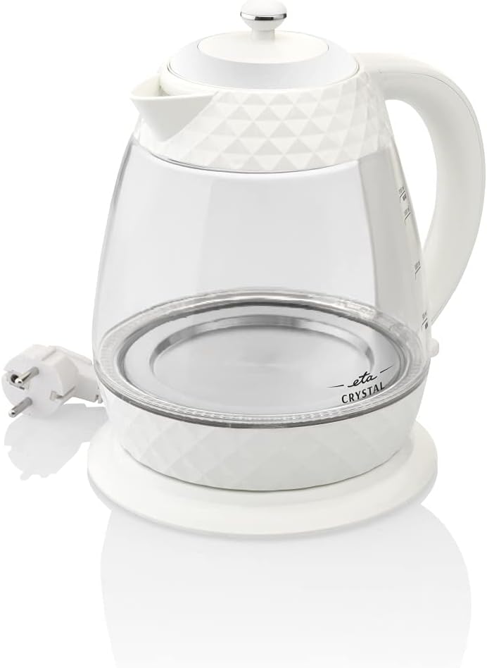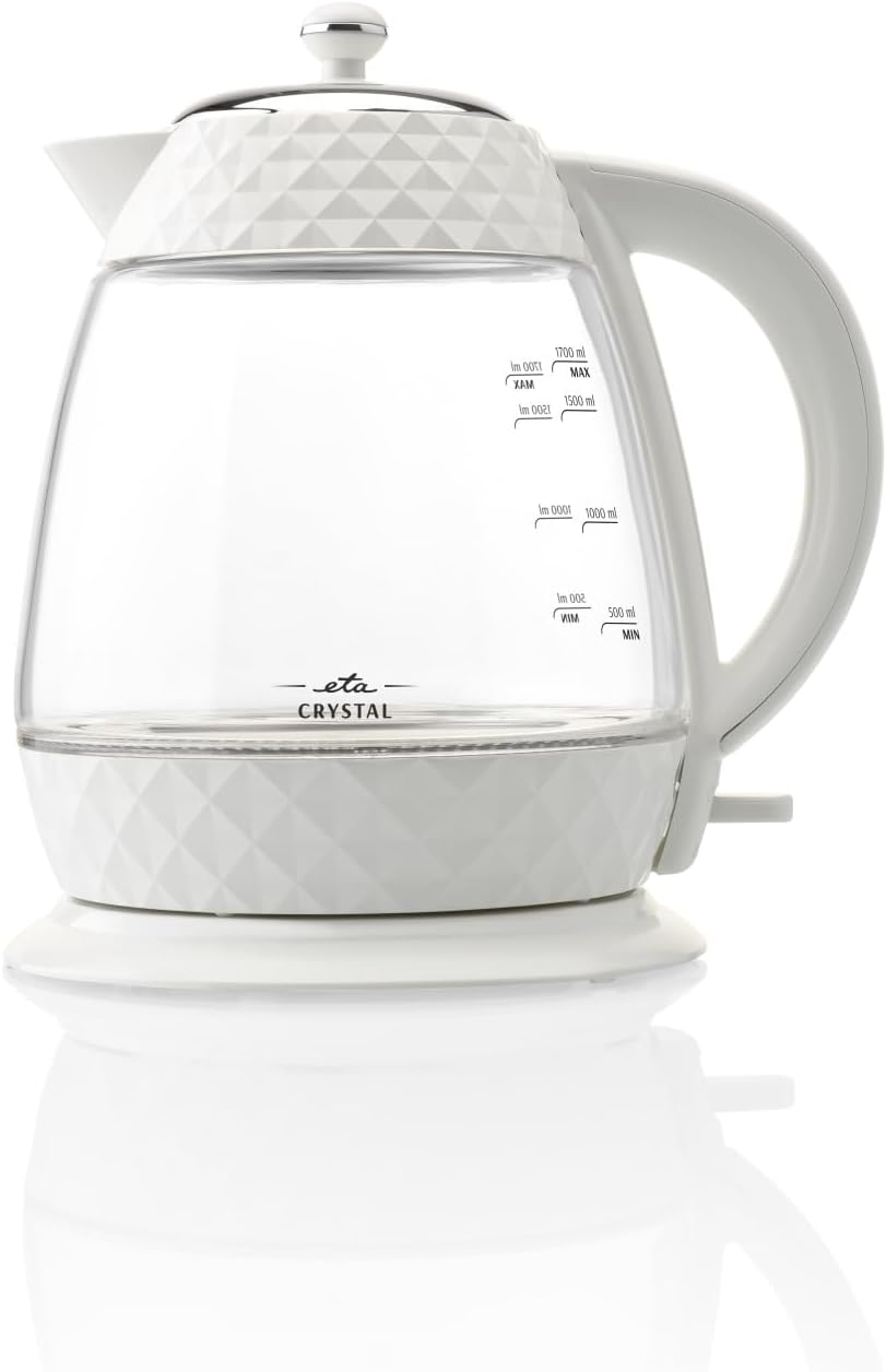 ETA Design Wasserkocher Crystal I Leistung 2.200 W I Volumen 1,7 l I Entkalkungsfilter I Wasserstandsanzeige I LED-Betriebsanzeige I abnehmbarer Deckel I Weiß | قیمت یورویی 34.94€