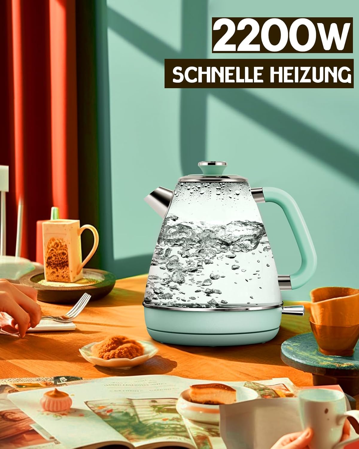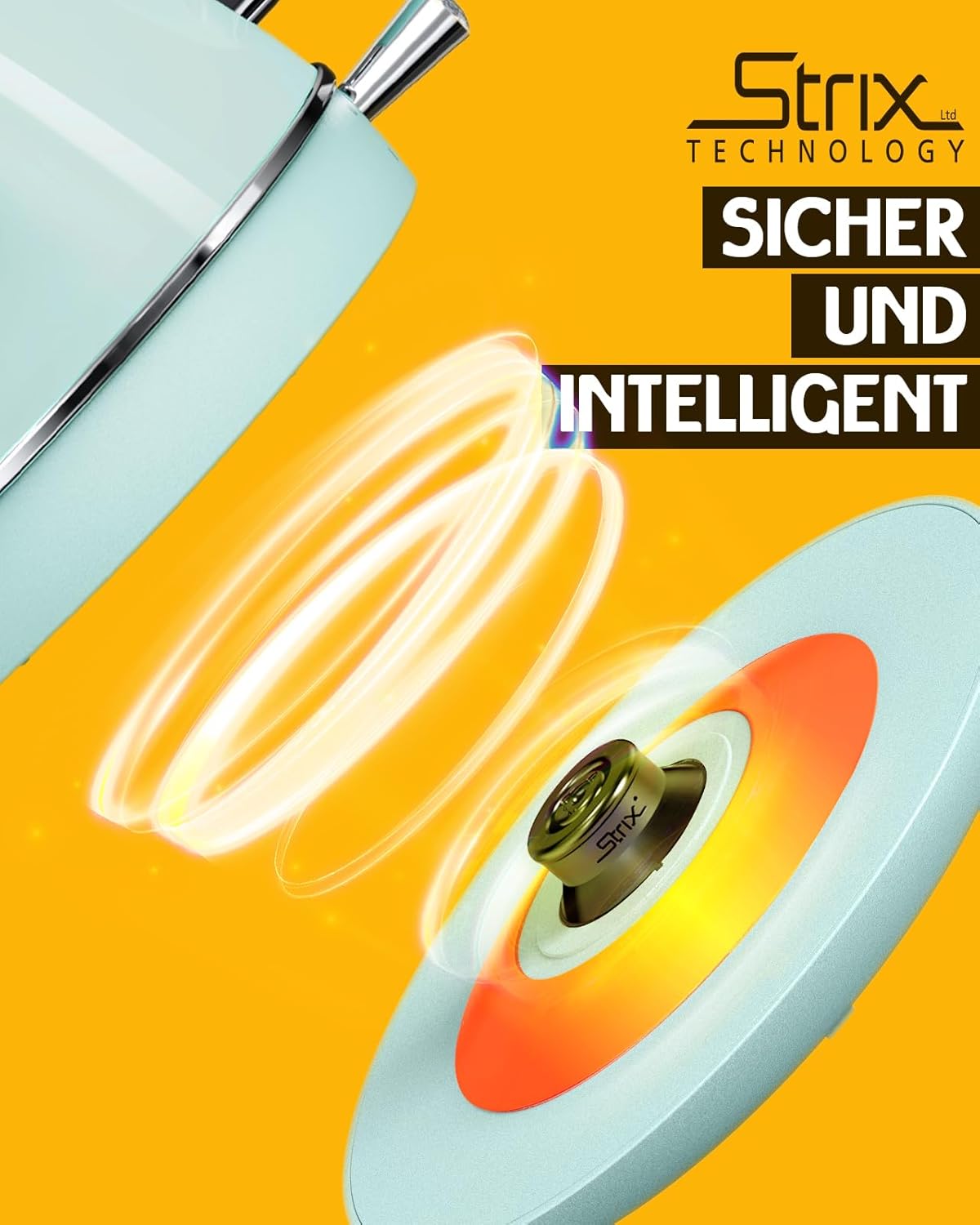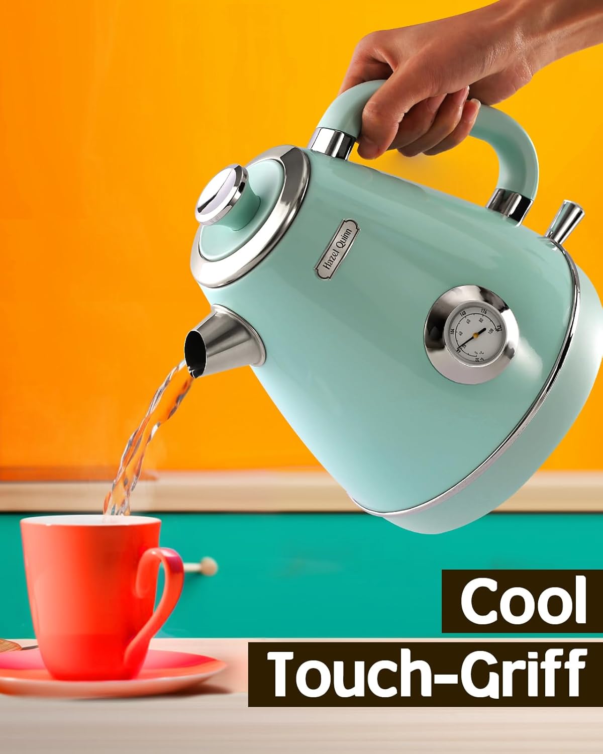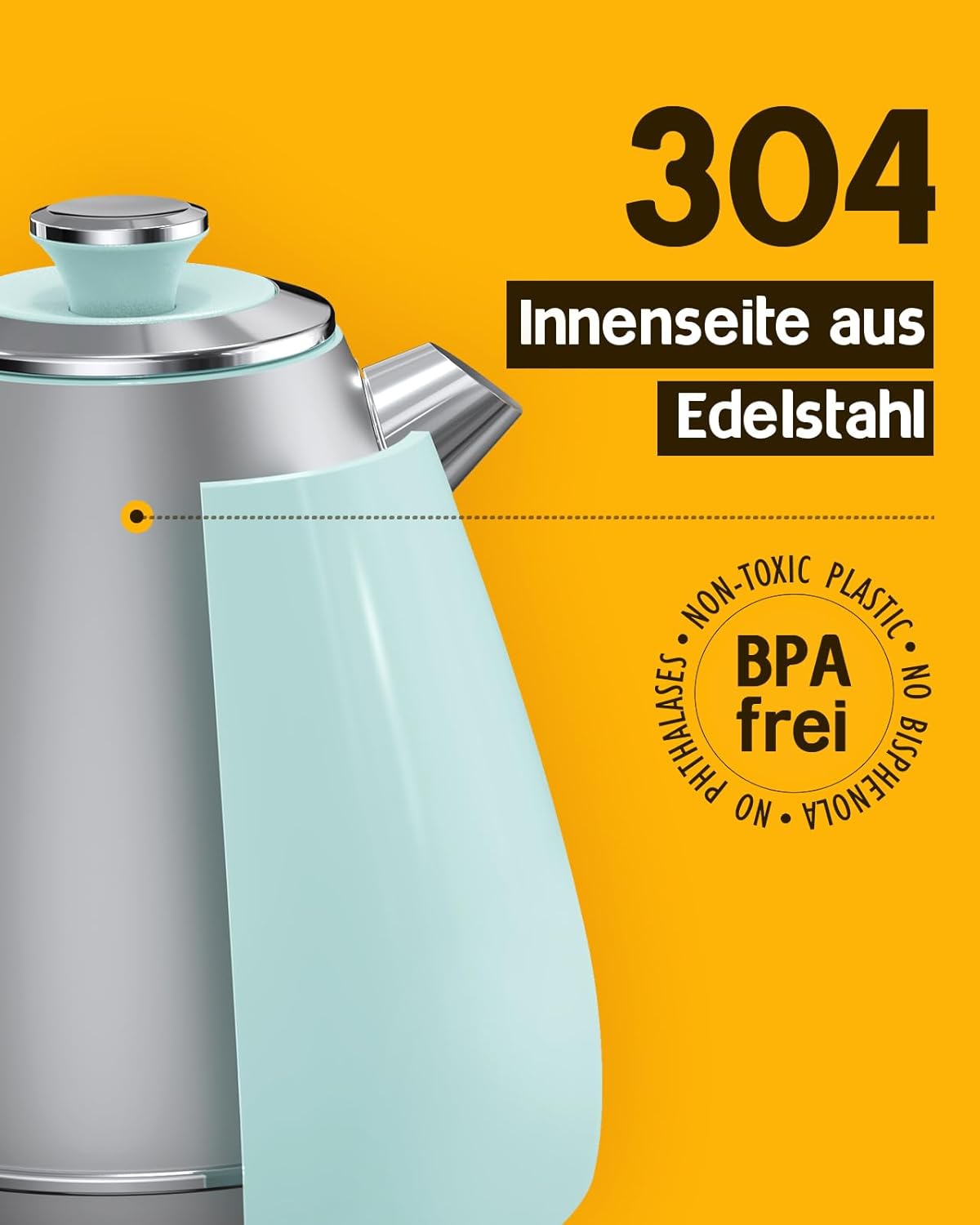Hazel Quinn Elektrischer Wasserkocher Edelstahl, BPA-frei, Temperaturanzeige, Retro Design, Automatische Abschaltung, STRIX-Controller, 360° Gerätefuß, 2200 W, 1,7 Liter, Mintgrün | قیمت یورویی 65.99€