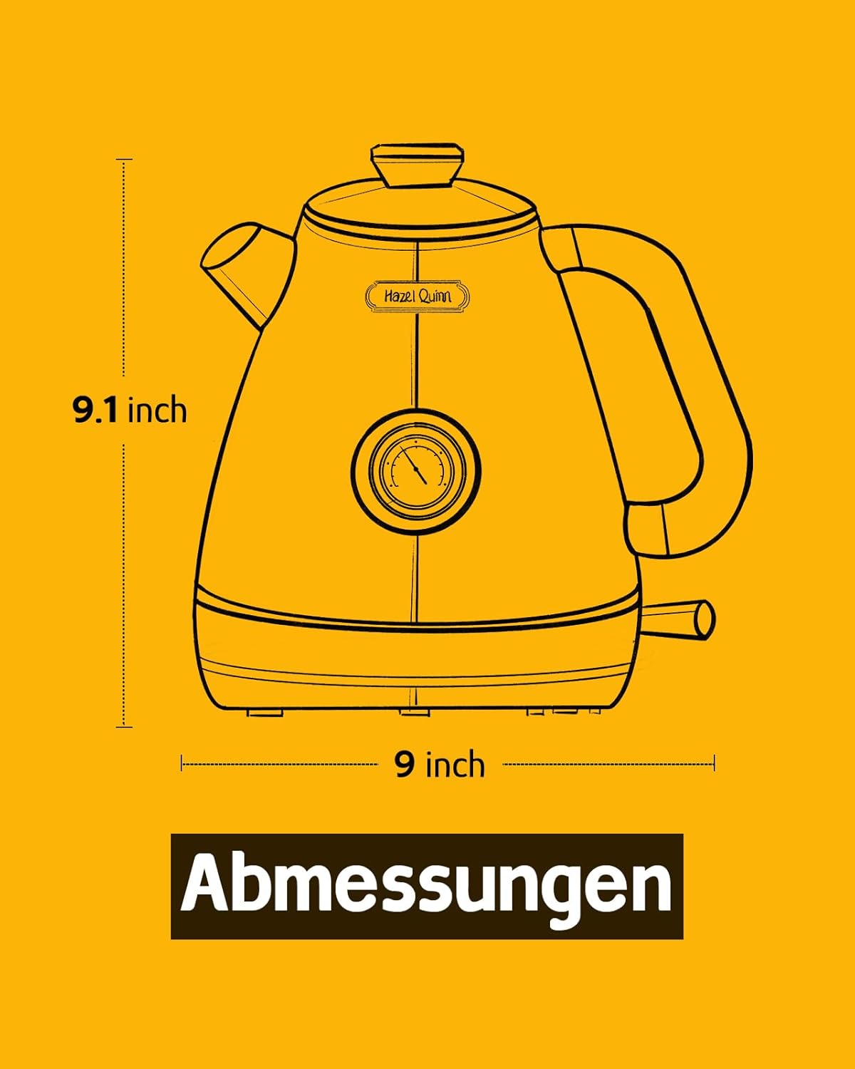[Dreifache Sicherheitsgarantie] Die STRIX-Thermostat-Technologie bietet dreifache Sicherheit für Ihren Gebrauch. 1-Automatische Abschaltung, wenn das Wasser zu kochen beginnt; 2-Automatische Abschaltung, wenn der Wasserkocher von der Basis angehoben wird; 3-Verhindern Sie, dass der Wasserkocher ohne Wasser eingeschaltet wird. [Ganz aus Edelstahl] Dieser Retro-Wasserkocher ist aus lebensmittelechtem 304er Edelstahl im Inneren, im Deckel und im Filter gefertigt. Es kommt kein Plastik mit dem Wasser in Berührung, so dass Sie und Ihre Familie BPA-frei und gesund trinken können. [Großes Fassungsvermögen, schnelles Kochen] Dieser leistungsstarke 2200 Watt Teekessel kann schnell 1,7 Liter Wasser in 4 bis 5 Minuten kochen. Seien Sie immer bereit für die Zubereitung von bis zu 7 Tassen Getränken für Ihren Bedarf. [LED-Taste & Thermometer-Skala] Die Thermometer-Skala ist bequemer für Sie, um die gewünschte Temperatur von heißem Wasser für verschiedene Nutzungsszenarien vorzubereiten, wie die Zubereitung von Kaffee, Tee und gebrühter Milch. Die One-Touch-Taste mit einer hellen LED-Anzeige macht die Bedienung einfach. [Kabelloser Betrieb] Dieser Wasserkocher hat einen 360-Grad-Drehfuß und ist für den kabellosen Betrieb vollständig abnehmbar. Er lässt sich leichter aufheben und ausgießen und ist für Links- und Rechtshänder geeignet. | قیمت یورویی : 65.99€