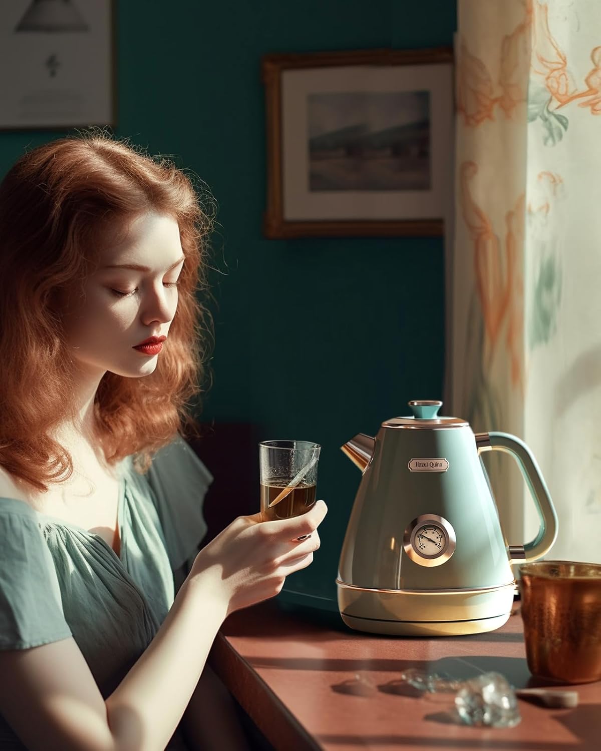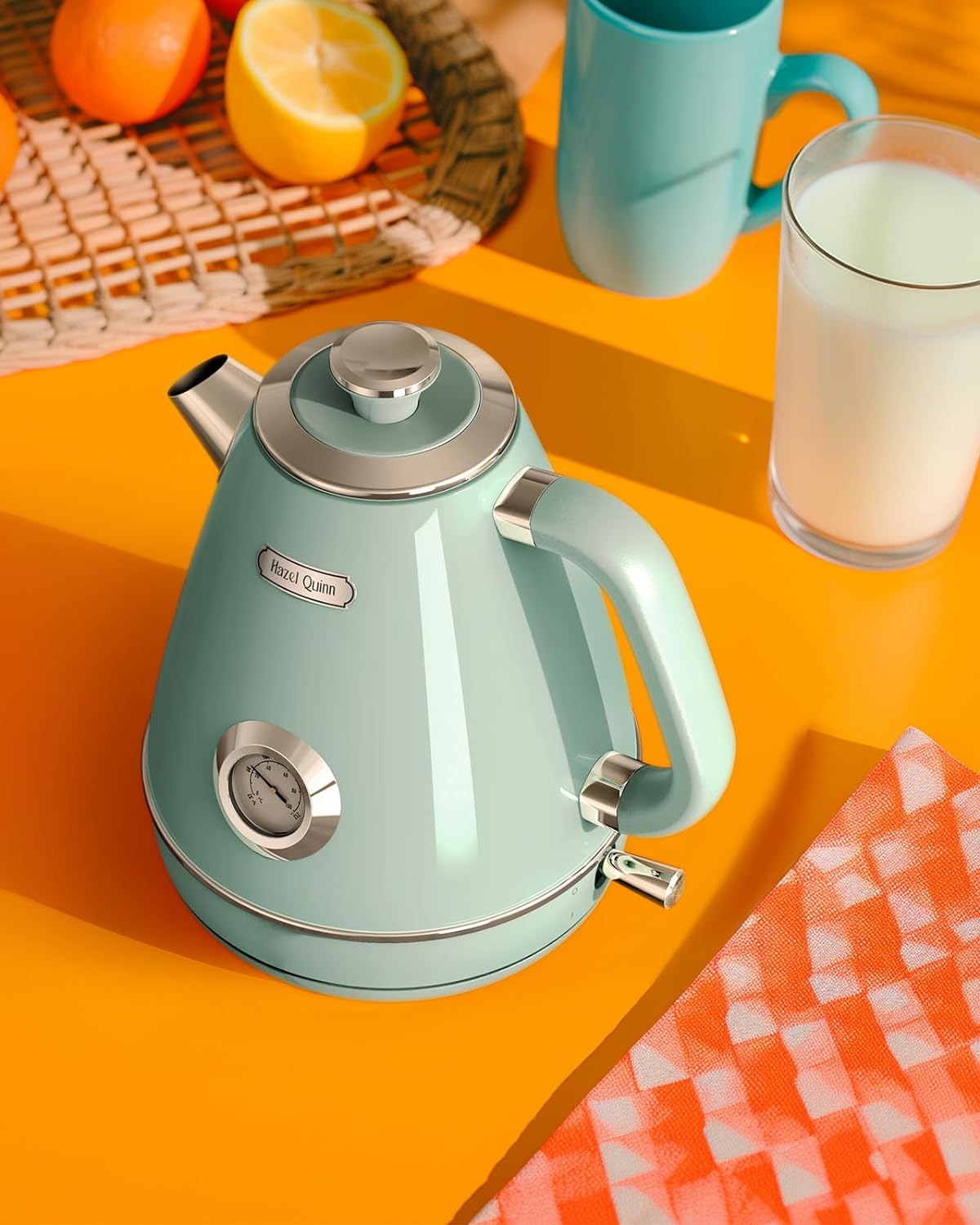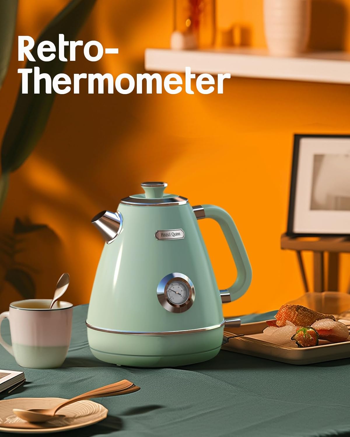 کتری برقی Hazel Quinn، فولاد ضد زنگ، بدون BPA، نمایشگر دما، طراحی رترو، خاموش شدن خودکار، کنترلر STRIX، پایه 360 درجه، 2200 وات، 1.7 لیتر، سبز نعنایی