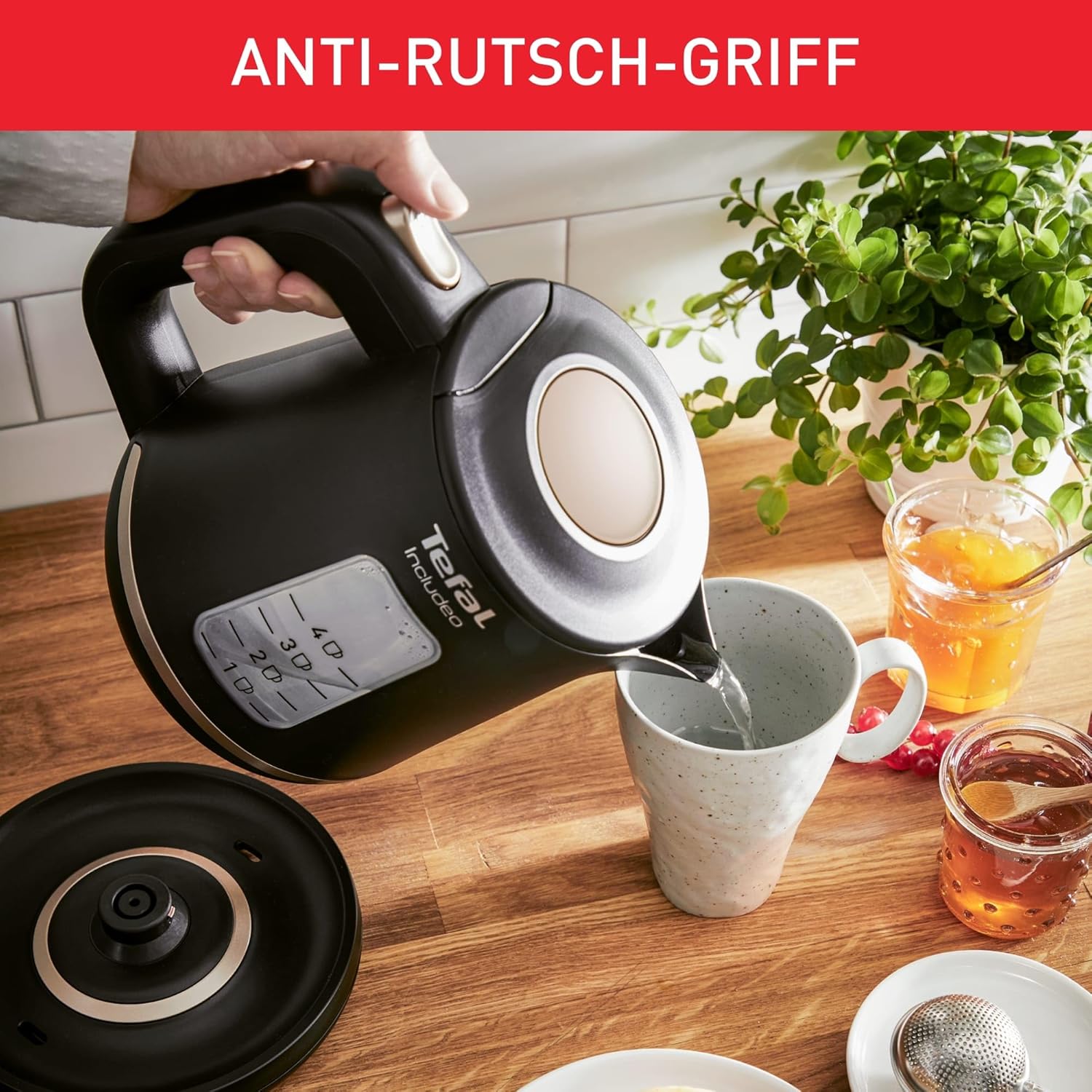 Tefal KI5338 Includeo Wasserkocher | Fassungsvermögen 1 L | Anti-Rutsch-Griff | einfach abzulesende Wasserstandsanzeige | 360°-Drehsockel | herausnehmbarer Filter | 2400 W | 23.3 x 16.6 x 20 cm Wasserkocher im exklusiven Design, 1 l Single | قیمت یورویی 33.99€