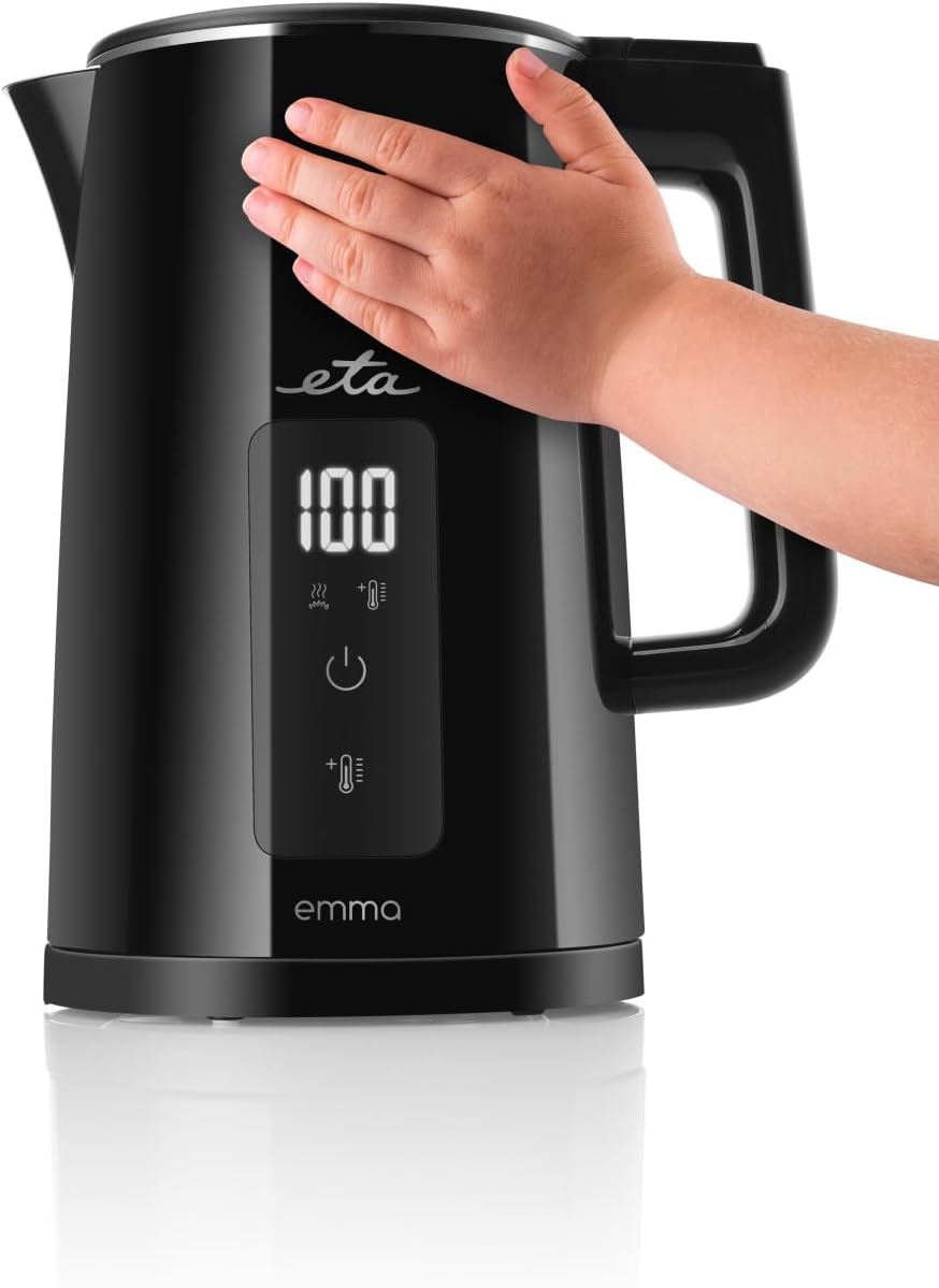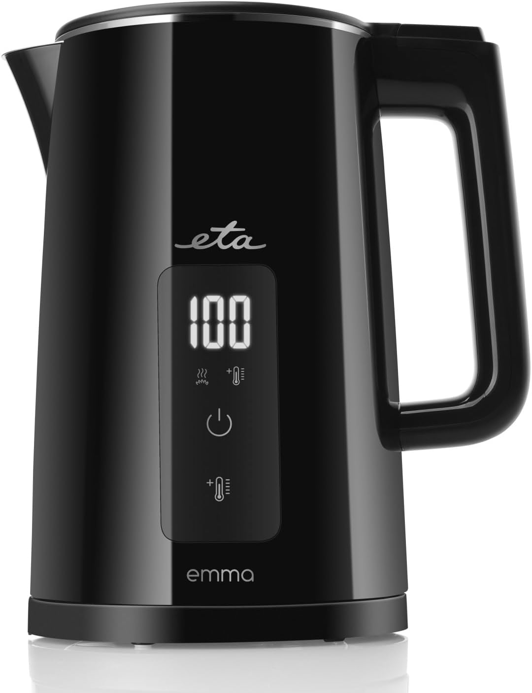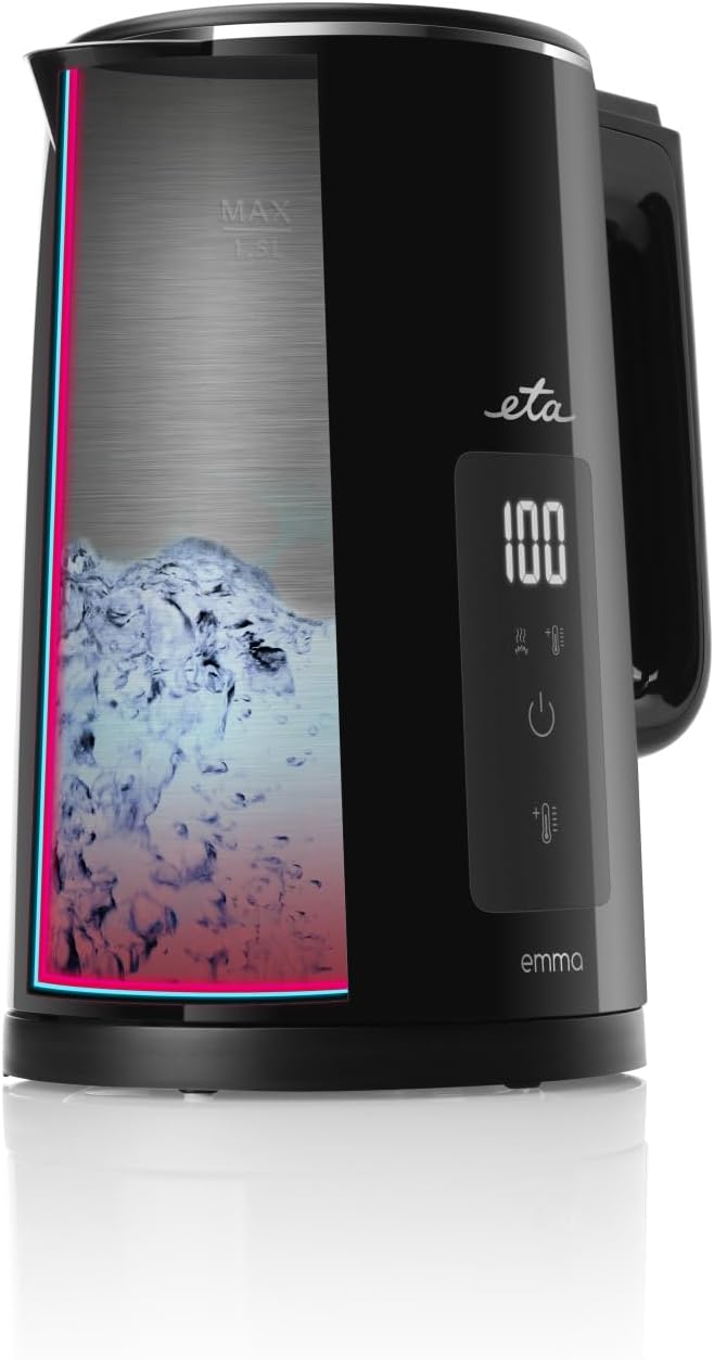 Der Designer-Wasserkocher ETA Emma wird eine einzigartige Dekoration für Ihre Küche sein. Sein elegantes Design mit klarer LED-Anzeige wird viele Blicke auf sich ziehen und passt in jede moderne Küche. Teekocher und Wasserkocher in einem Gerät! Mit der variablen Temperatureinstellung von 40-100°C in 6 Einstellungen, finden Sie immer die richtige Temperatur. Übersichtliche und einfache Bedienung dank des LED-Displays mit nur wenig Touch-Feldern, für maximalen Bedienkomfort. Die doppelwandige Konstruktion des ETA Emma Wasserkocher verhindert versehentliche Verbrennungen. Seine äußere Schicht aus hochwertigem Kunststoff fühlt sich angenehm an, auch wenn es im Inneren kochend heiß ist. Das Innere des Wasserkocher ist aus rostfreiem Stahl gefertigt, der langlebig und hygienisch ist. Natürlich spielt auch die Sicherheit eine große Rolle und dank der automatischen Abschaltung sowie der Warmhaltefunktion, können Sie den Wasserkocher auch ein paar Minuten unbeaufsichtigt lassen. | قیمت یورویی : 63.68€