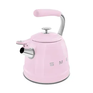 کتری رو گازی اسمگ مدل WKF01PK ، محصولی از طراحی کلاسیک دهه 50 میلادی برند ایتالیایی SMEG است که در رنگ صورتی تولید شده.
