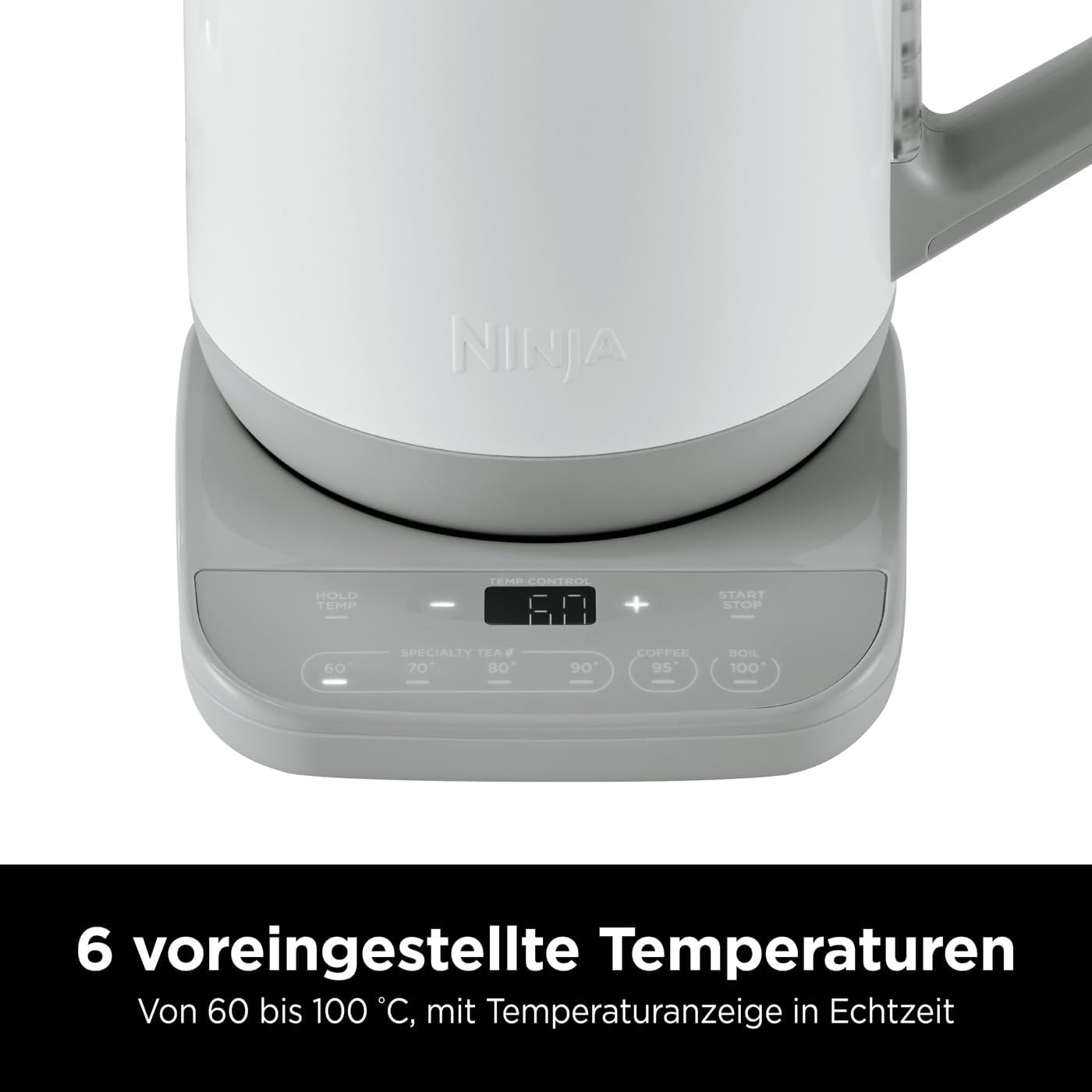Ninja Wasserkocher Perfect Temperature, 1,7L, LED-Anzeige, Wasserkocher mit Schnellkoch-Funktion und verschiedenen Temperatureinstellungen, Weiß KT200EUWH | قیمت یورویی 89.99€