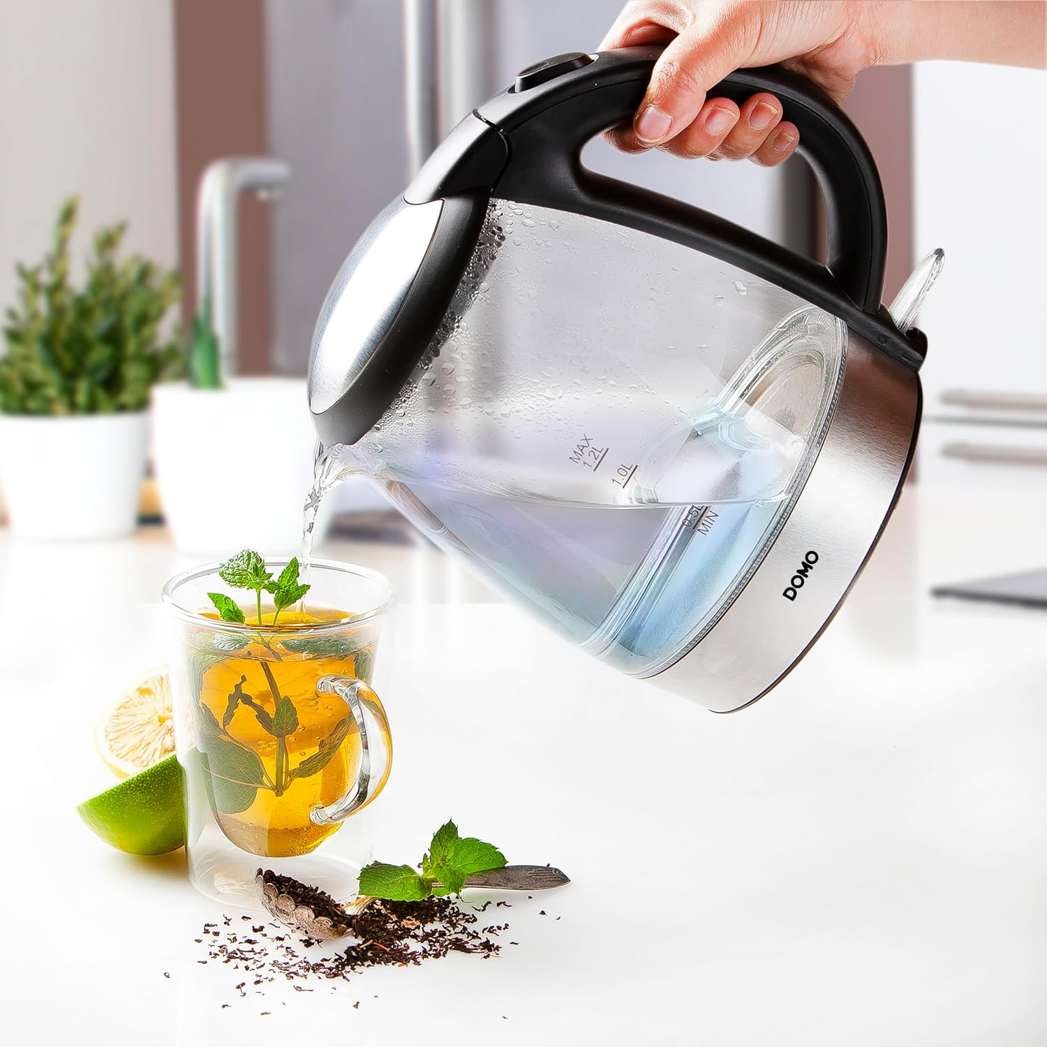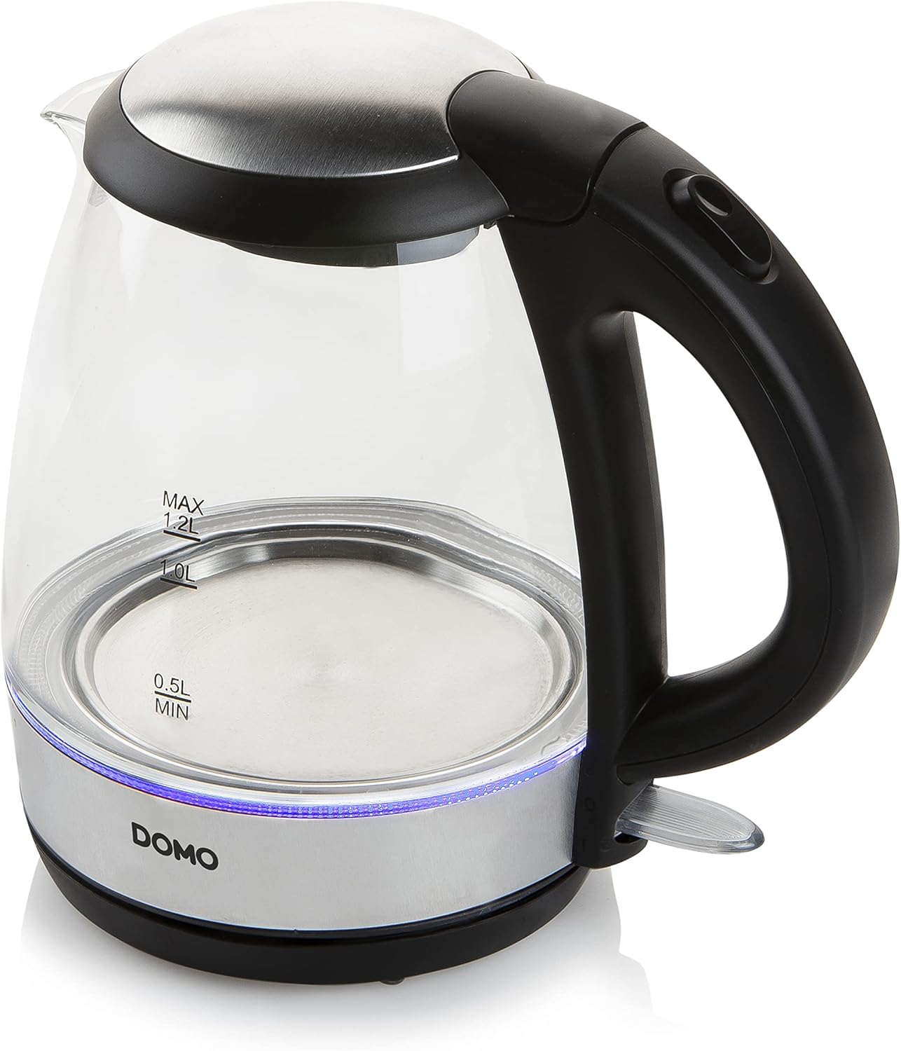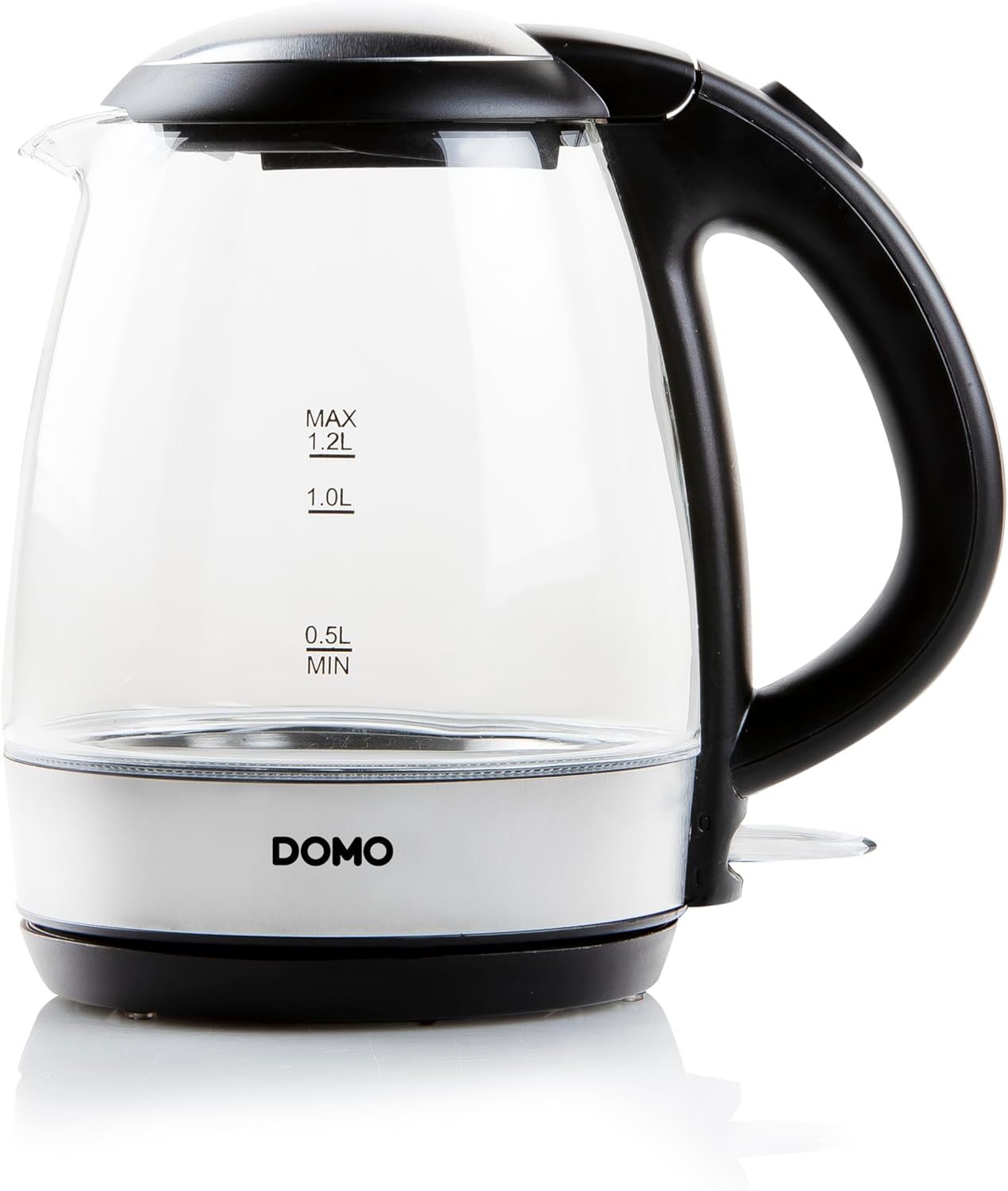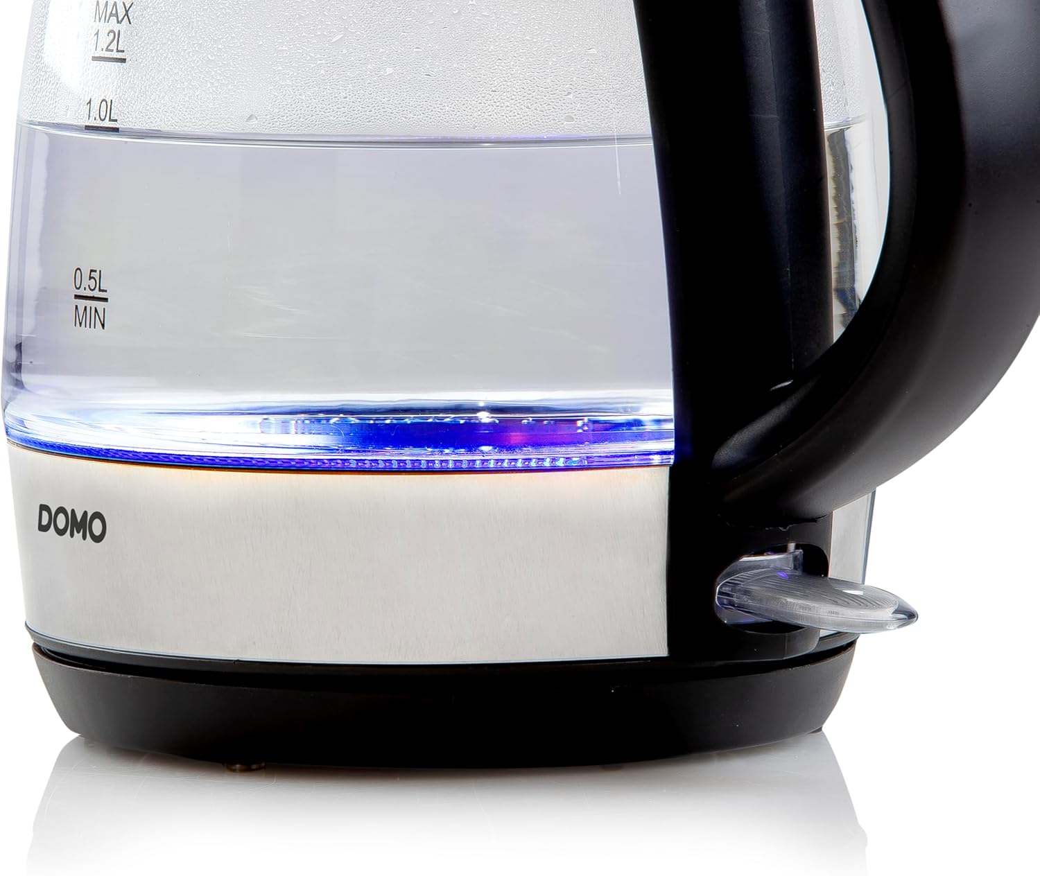 DOMO DO9218WK Wasserkocher - Mit blauer Innenbeleuchtung - Automatische Abschaltung - 1,2L - 2200W - Glas/Schwarz 1.2 L | قیمت یورویی 26.99€