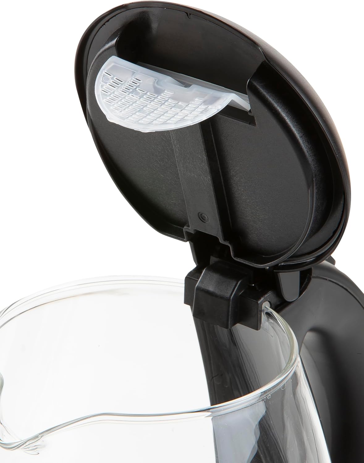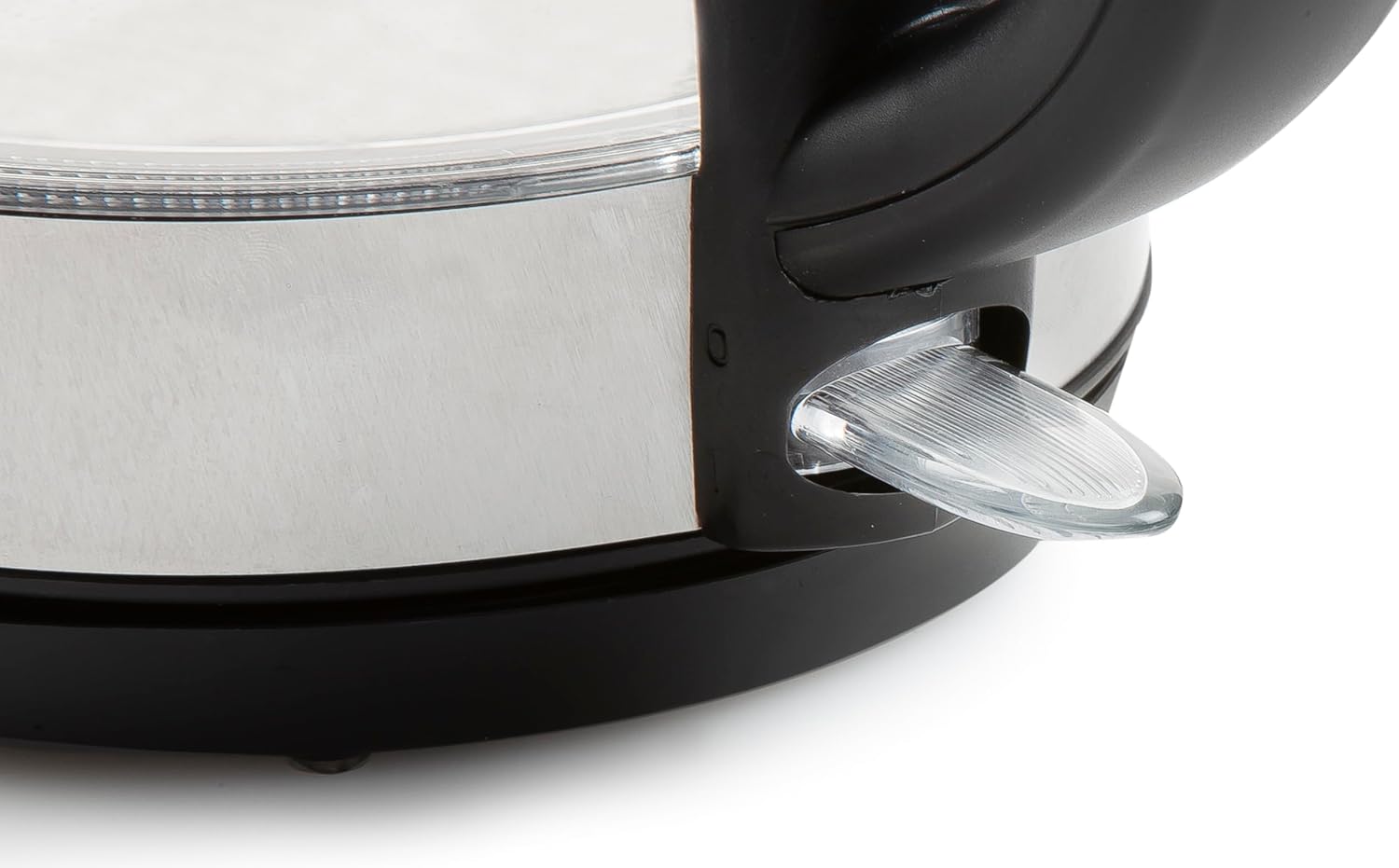 DOMO DO9218WK Wasserkocher - Mit blauer Innenbeleuchtung - Automatische Abschaltung - 1,2L - 2200W - Glas/Schwarz 1.2 L لینک آمازون : https://www.amazon.de/dp/B082SYZMHG?th=1&psc=1 طراحی شیشهای مدرن با نورپردازی LED - کتری DOMO مدل DO9218WK به هر آشپزخانهای سبک میبخشد و هنگام تهیه نوشیدنیهای گرم شما واقعاً چشمنواز است. ظرفیت ۱.۲ لیتر و توان ۲۲۰۰ وات - با این کتری DOMO میتوانید به لطف المنت گرمایشی قدرتمند، آب را برای چای، قهوه یا سوپ در کمترین زمان بجوشانید. ایمن و آسان برای استفاده - کتری چای دارای خاموش شدن خودکار، محافظت در برابر جوش آمدن و پایه چرخشی 360 درجه برای استفاده راحت است. نوشیدنیهای تمیز به لطف سیستم فیلتر - فیلتر رسوب آهک یکپارچه در دهانه، آب شفاف را تضمین میکند، در حالی که المنت گرمایشی پنهان، بهداشتی و به راحتی تمیز میشود. کاربردی و جمع و جور - کتری DOMO مجهز به محفظه نگهداری کابل است، درب استیل ضد زنگ بادوام است و به کتری جلوهای زیبا میبخشد.