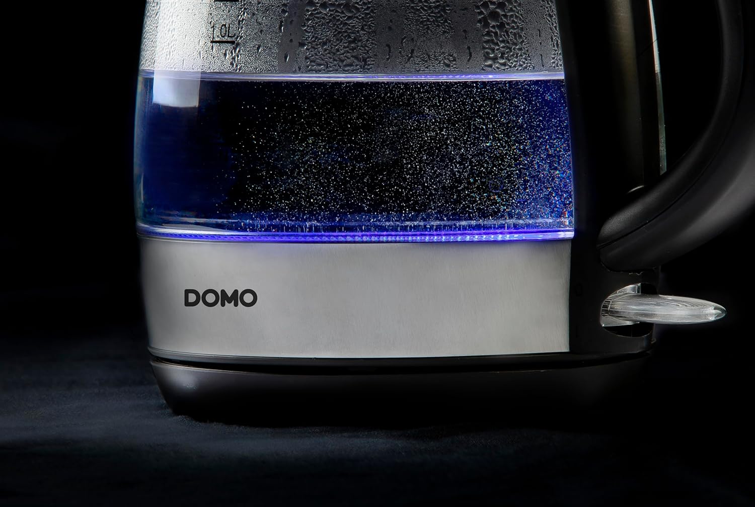 کتری DOMO DO9218WK - با روشنایی داخلی آبی - خاموش شدن خودکار - 1.2 لیتر - 2200 وات - شیشه ای/مشکی 1.2 لیتر