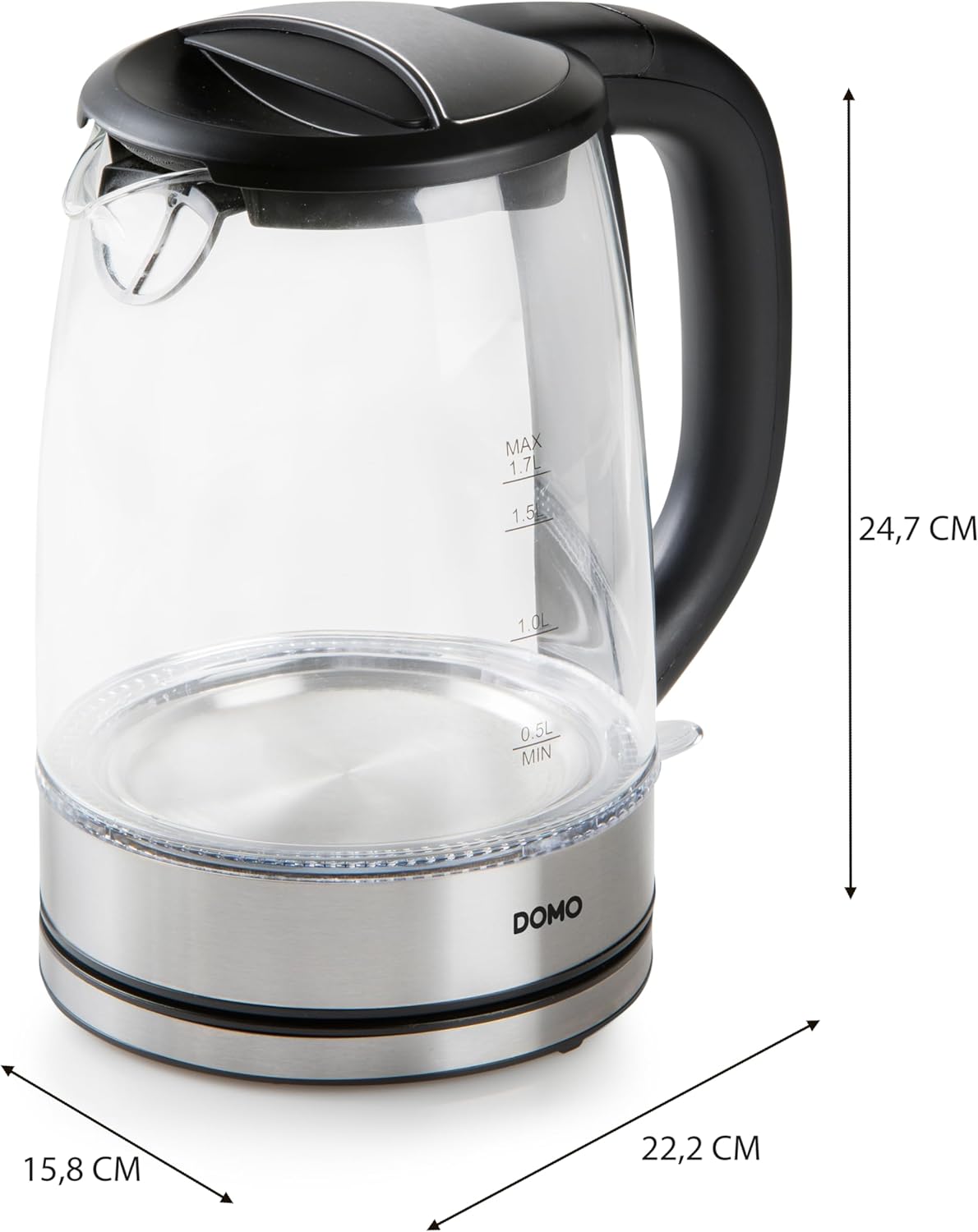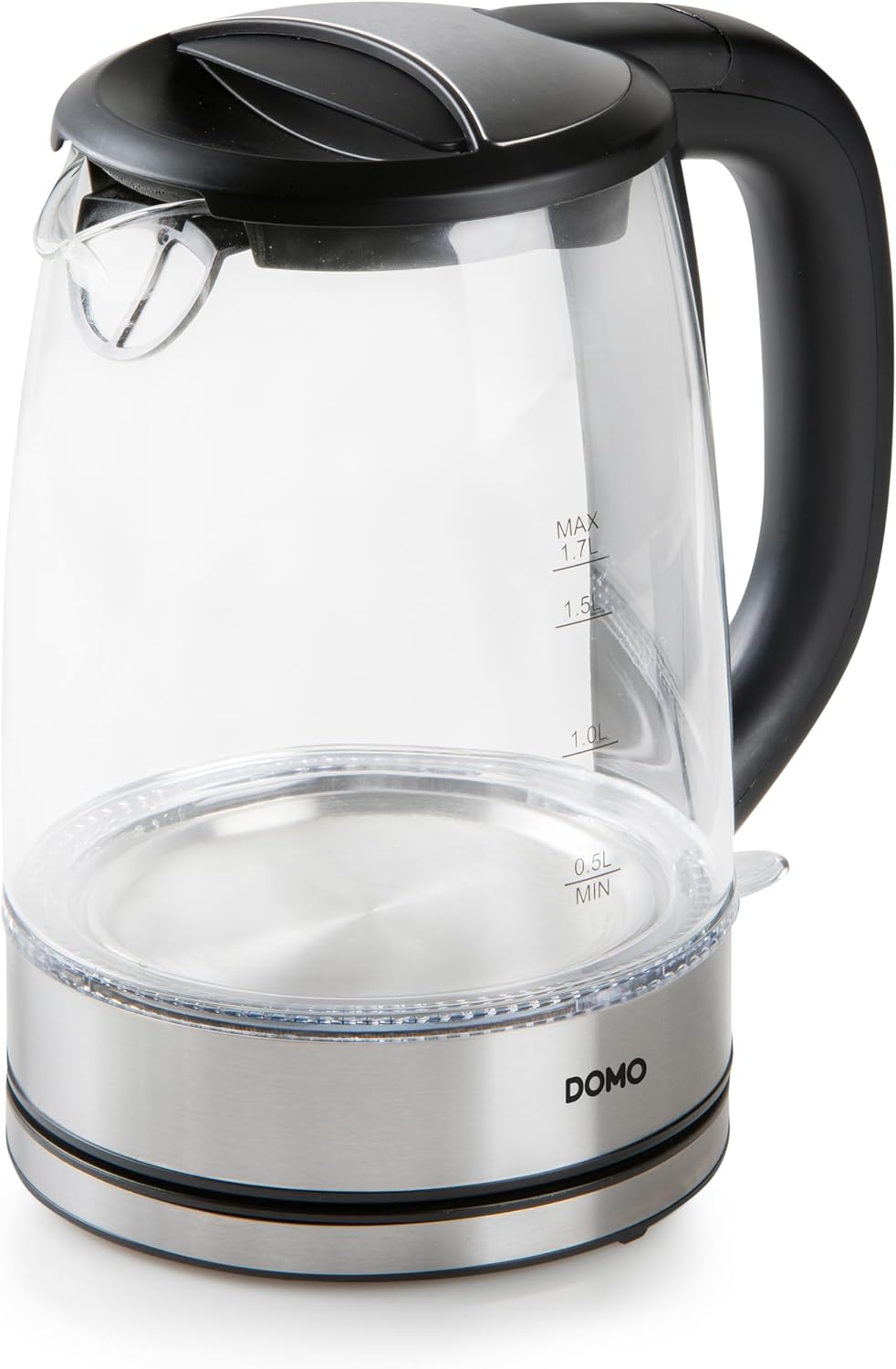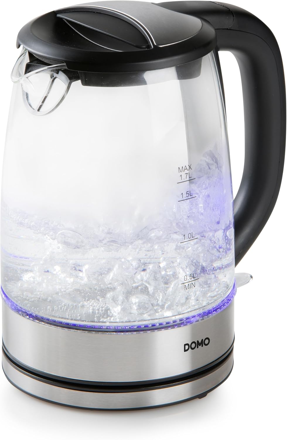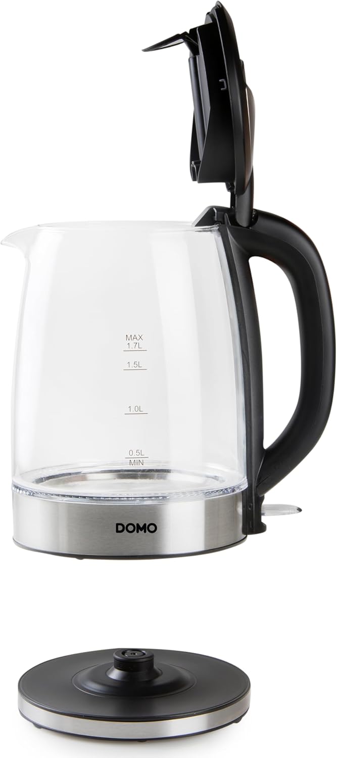 DOMO DO9266WK Wasserkocher - Mit blauer LED-Innenbeleuchtung - 360° drehbare Basis - 1,7L - Glas - Silber/Schwarz 1.7 L | قیمت یورویی 34.95€