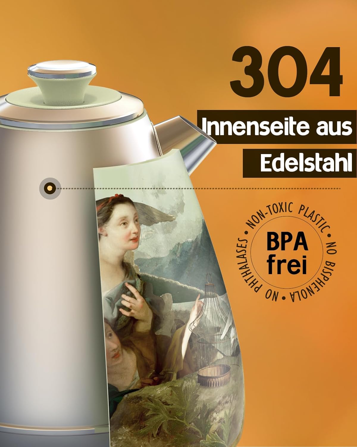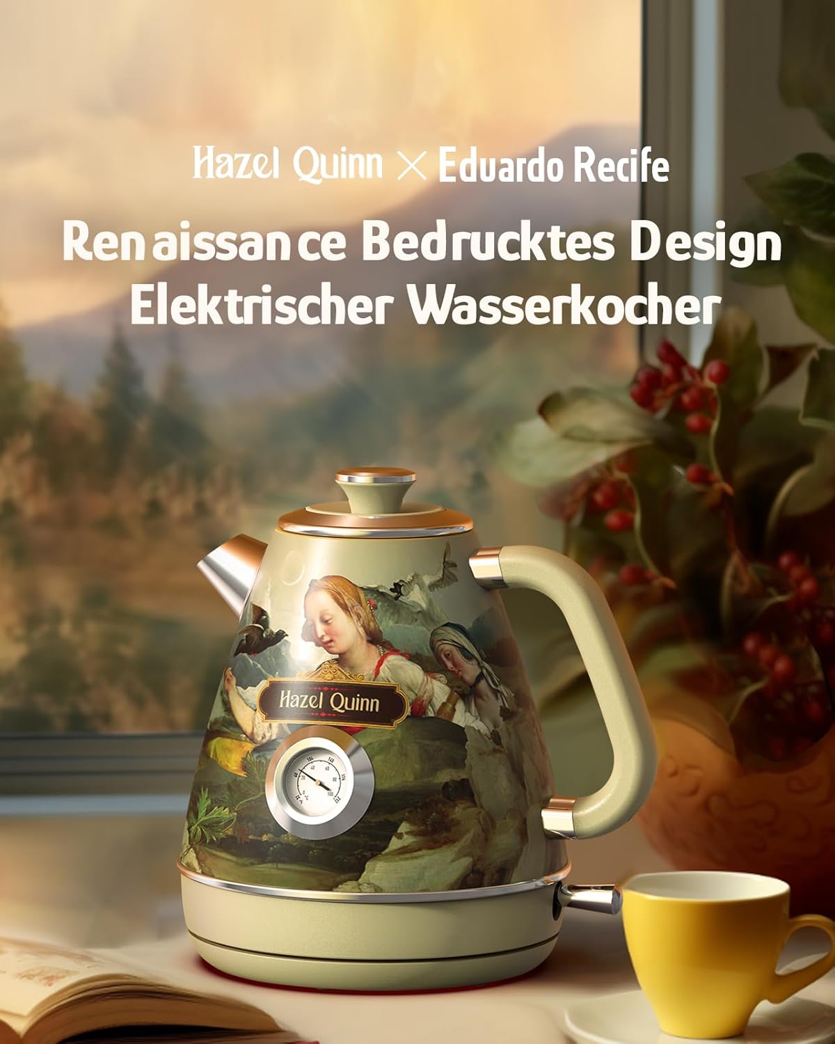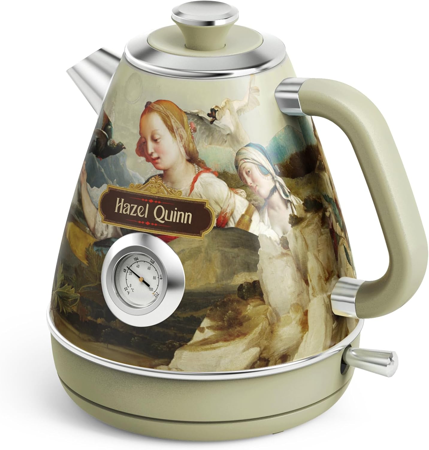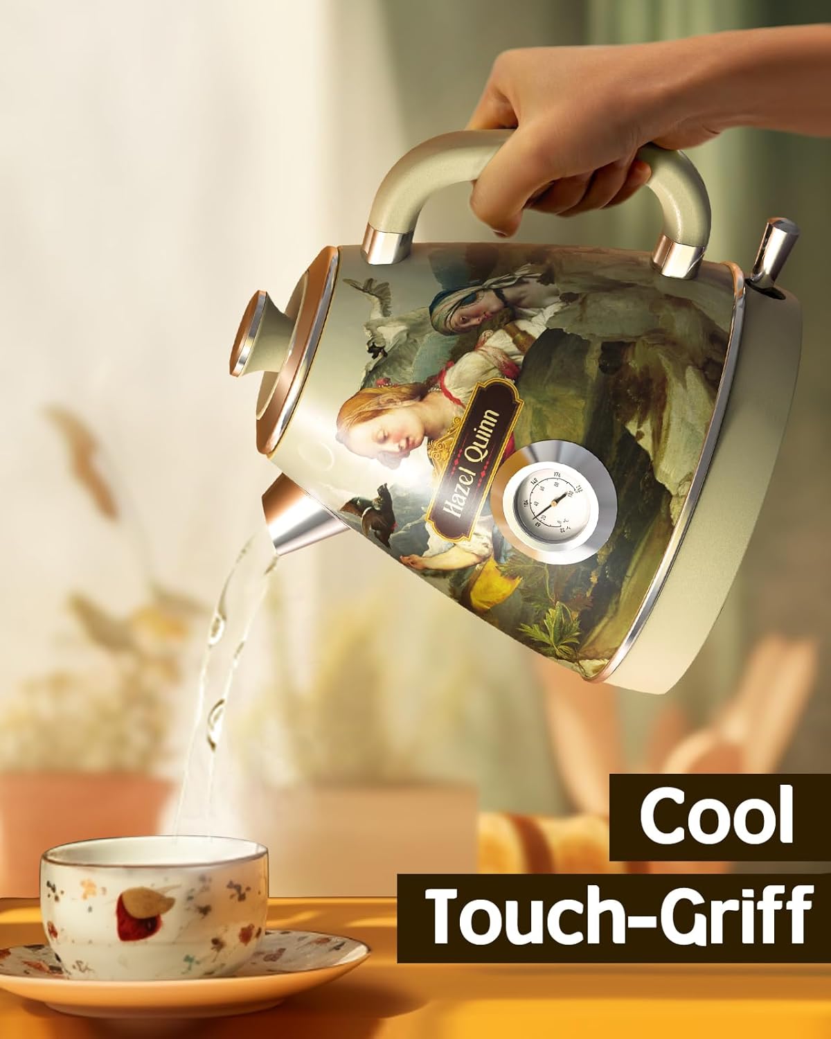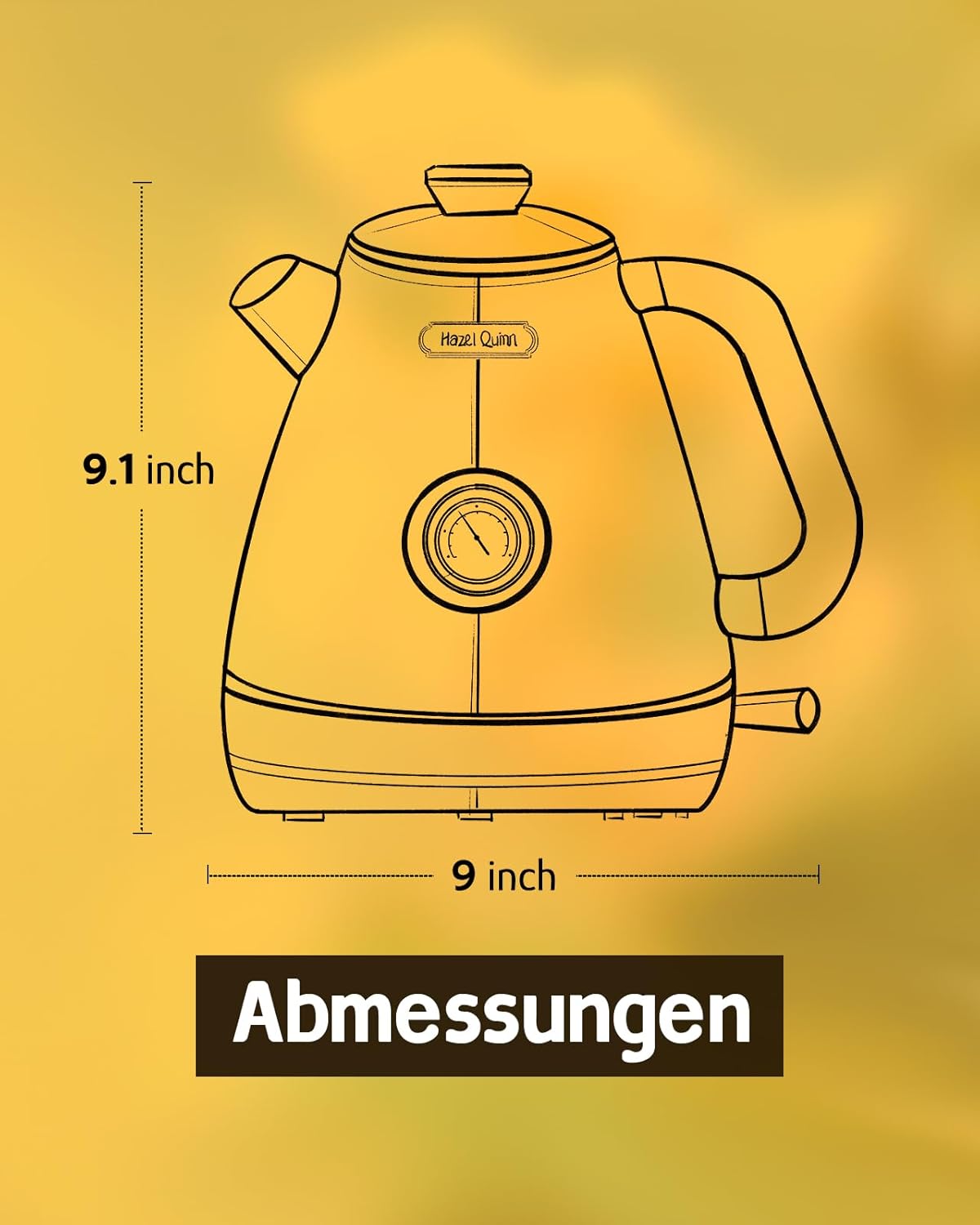 Hazel Quinn Wasserkocher Retro Vintage Design Edelstahl, 1,7 Liter, BPA-frei, Edelstahl, Automatische Abschaltung,Wasserkocher Temperaturanzeige, Strix Controller, Trockengehschutz, Renaissance | قیمت یورویی 59.99€