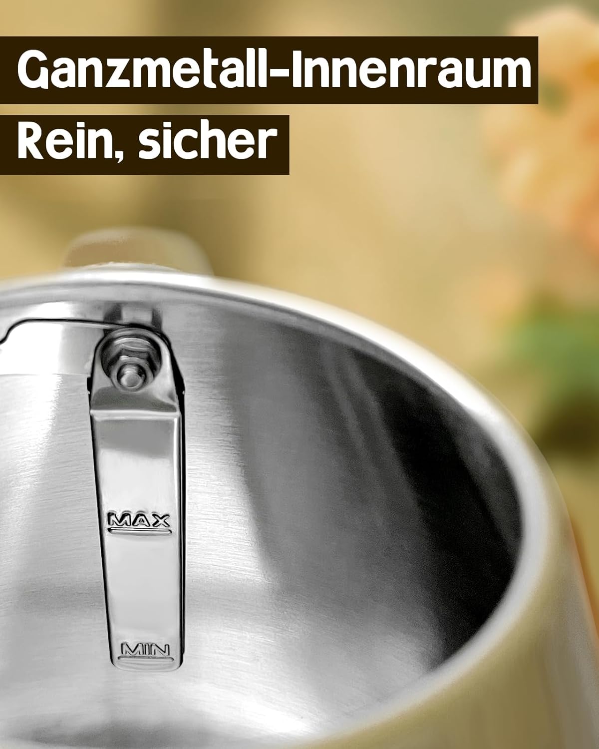 [Edelstahl wasserkocher ohne plastik & BPA frei] Hazel Quinn wasserkocher in Edelstahl und ist sicher, energiesparend und plastikfrei im Kontakt mit Wasser – für ein gesundes Trinkerlebnis ganz ohne BPA. [Sicherheit mit "Strix-Controller"] Den Elektrischer Wasserkocher zählen des Weiteren ein Trockengeh- und Überhitzungsschutz. [Schnellkochfunktion] Das Wasser wird schnell zum Kochen gebracht haben mit Leistung von 2200 W.erfekt für Kaffee, Tee, Haferflocken, Pasta und vieles mehr. [Temperaturanzeige] Beim Kochen von Wasser steigt das Thermometer mit der Wassertemperatur an. So erkennen Sie , ob das Wasser lauwarm, warm oder bereits kochend ist. [Empfehlungen zur sicheren Verwendung] Berühren Sie den Wasserkocher nicht und öffnen Sie nicht den Deckel, wenn dieser heiß ist. Bitte achten Sie darauf, dass der Deckel während des Betriebs geschlossen ist. Bewahren Sie den Wasserkocher außerhalb der Reichweite von Kindern auf. | قیمت یورویی : 59.99€