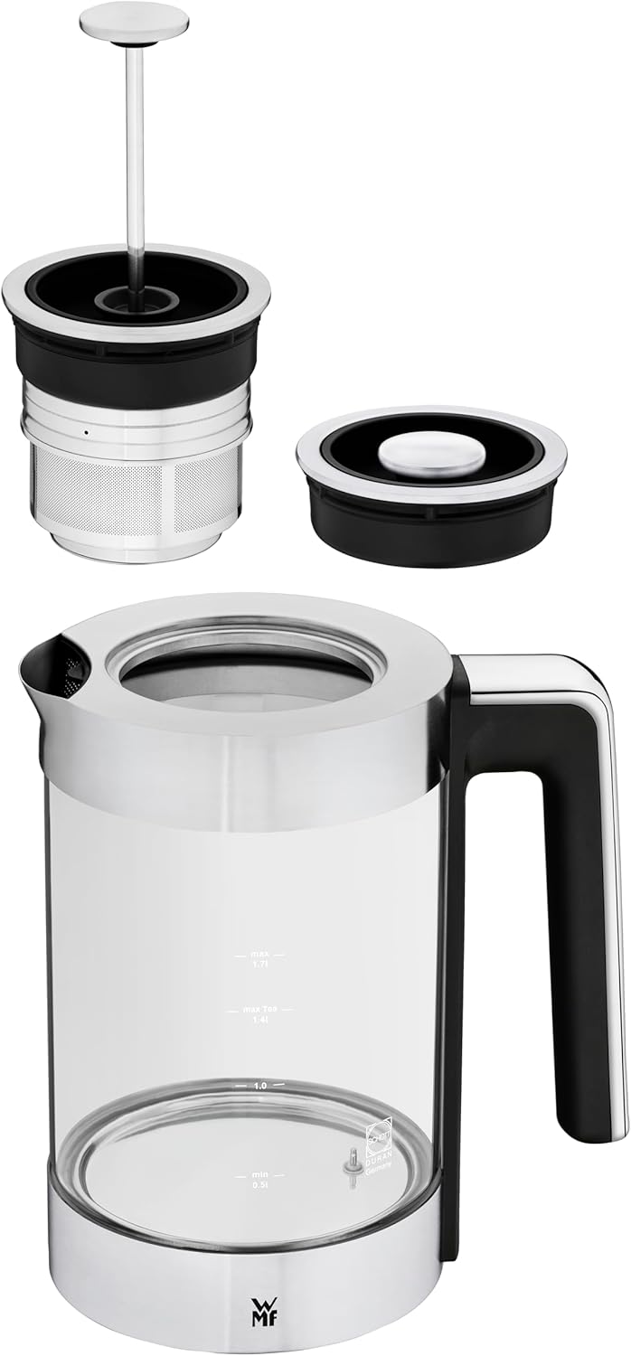 کتری WMF Lono 2 in 1 Vario با کنترل دما، 1.4-1.7 لیتر، کتری چای، 3000 وات، کتری شیشهای با دمکن چای، عملکرد گرم نگه داشتن 1.4 لیتر - 1.7 لیتر