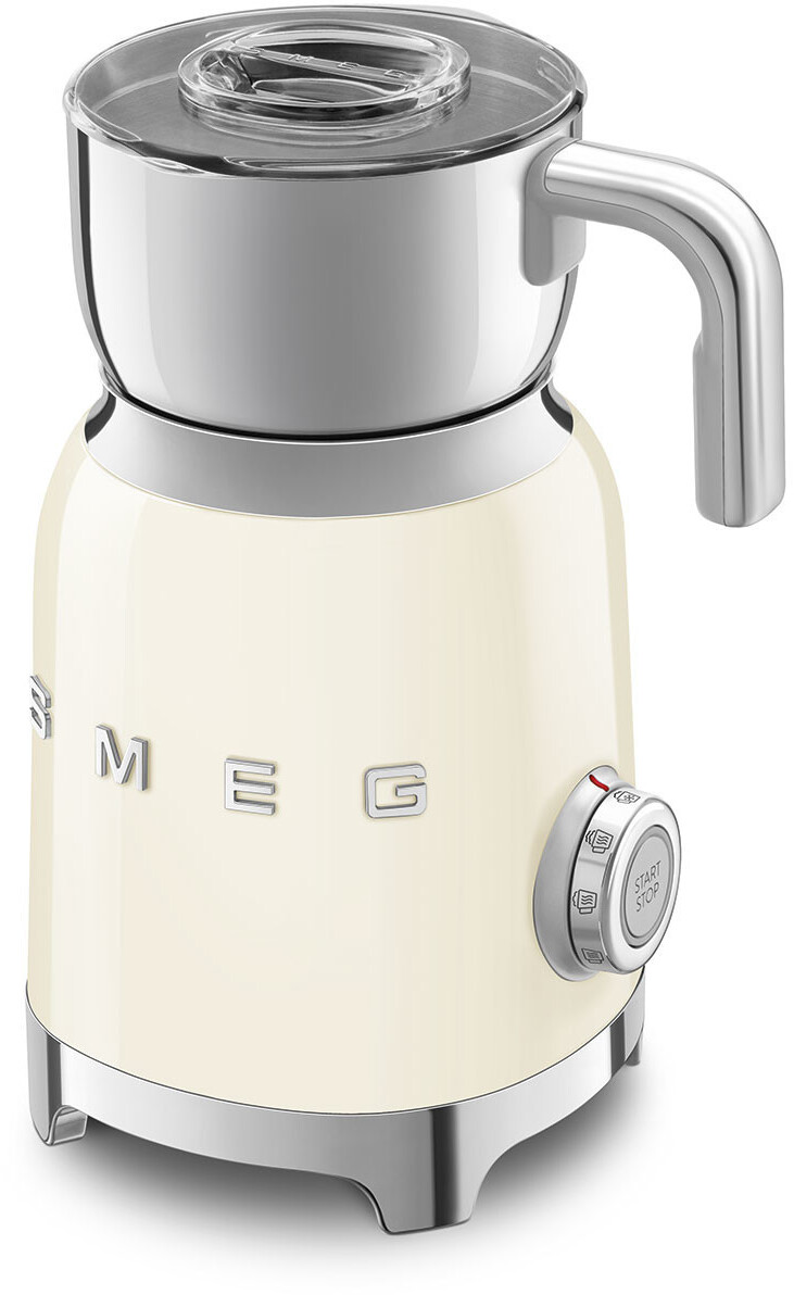 مدل MFF01 از برند اسمگ، یک کف شیر ساز تمام اتوماتیک با طراحی الهامگرفته از دهه ۵۰ میلادی است که در رنگ جذاب عرضه میشود. این دستگاه با توان ۵۰۰ وات، دارای ظرف داخلی استیل ضد زنگ با روکش نچسب، دو دیسک مجزا برای تهیه کف شیر یا همزدن ساده، و قابلیت انتخاب بین ۶ برنامه پیشفرض برای شیر داغ، کف شیر سرد یا گرم، شکلات داغ و حالت دستی است. استفاده از آن آسان، بیصدا و بسیار سریع است.