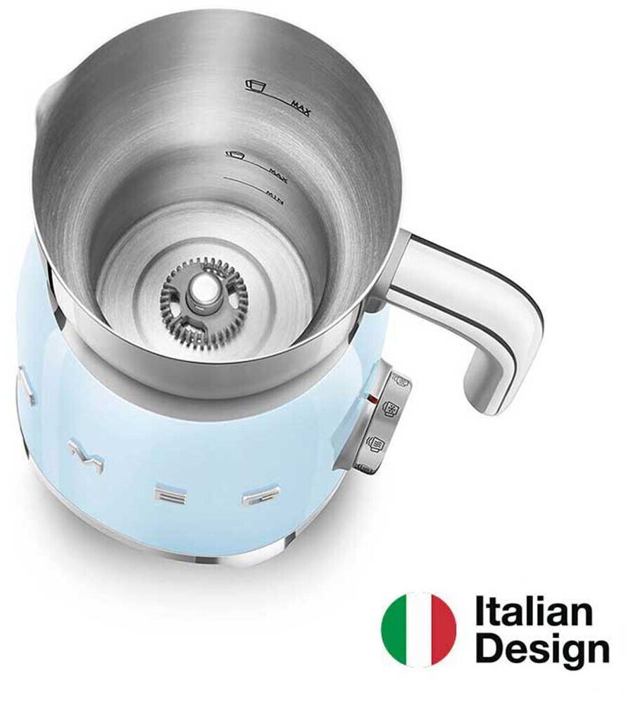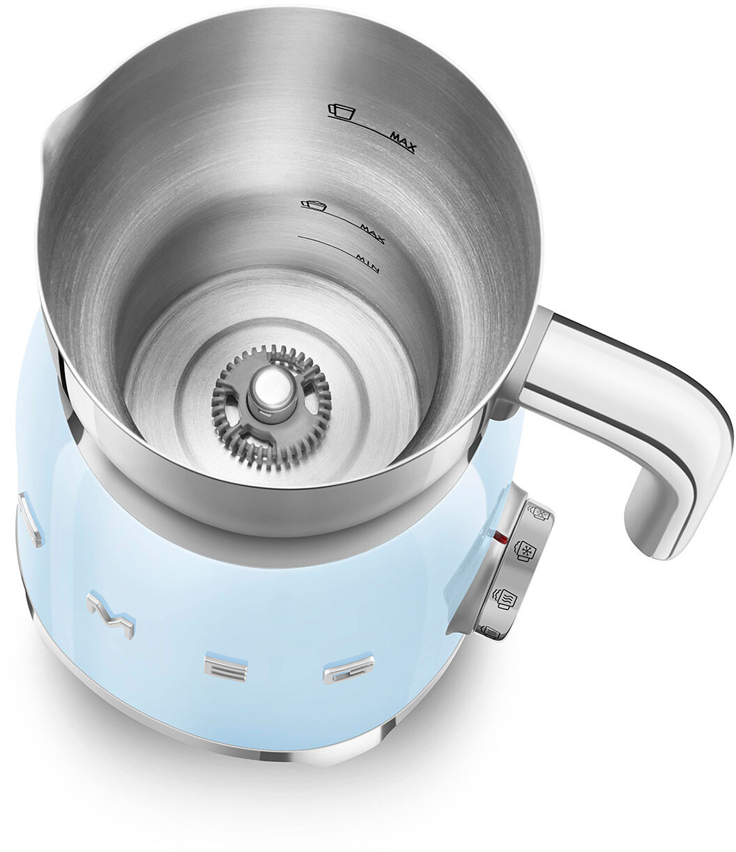 مدل MFF01 از برند اسمگ، یک کف شیر ساز تمام اتوماتیک با طراحی الهامگرفته از دهه ۵۰ میلادی است که در رنگ جذاب عرضه میشود. این دستگاه با توان ۵۰۰ وات، دارای ظرف داخلی استیل ضد زنگ با روکش نچسب، دو دیسک مجزا برای تهیه کف شیر یا همزدن ساده، و قابلیت انتخاب بین ۶ برنامه پیشفرض برای شیر داغ، کف شیر سرد یا گرم، شکلات داغ و حالت دستی است. استفاده از آن آسان، بیصدا و بسیار سریع است.