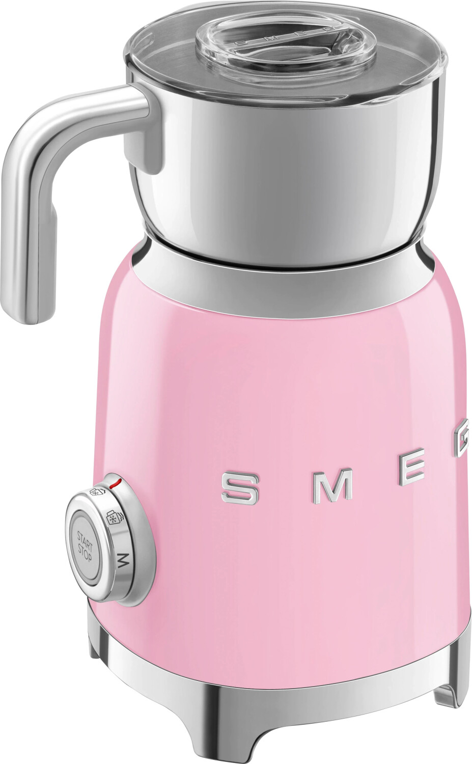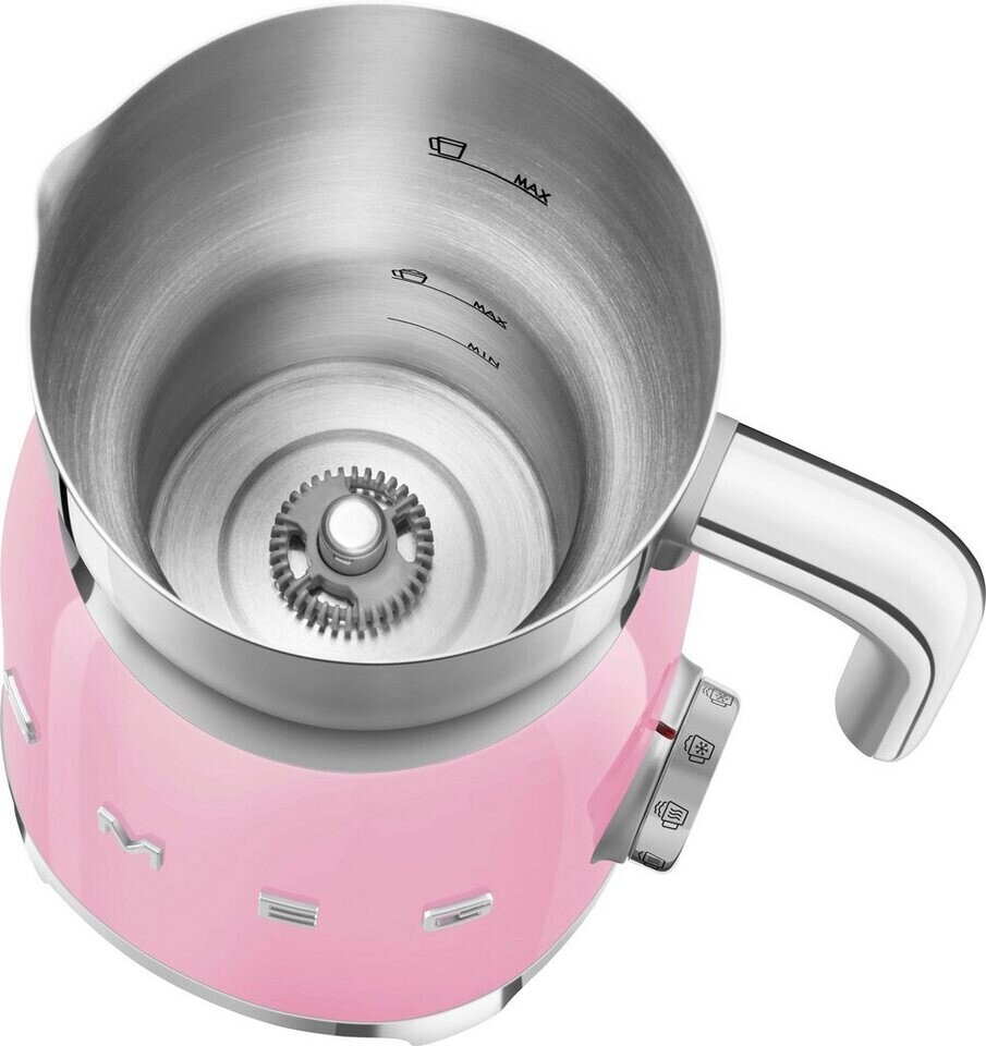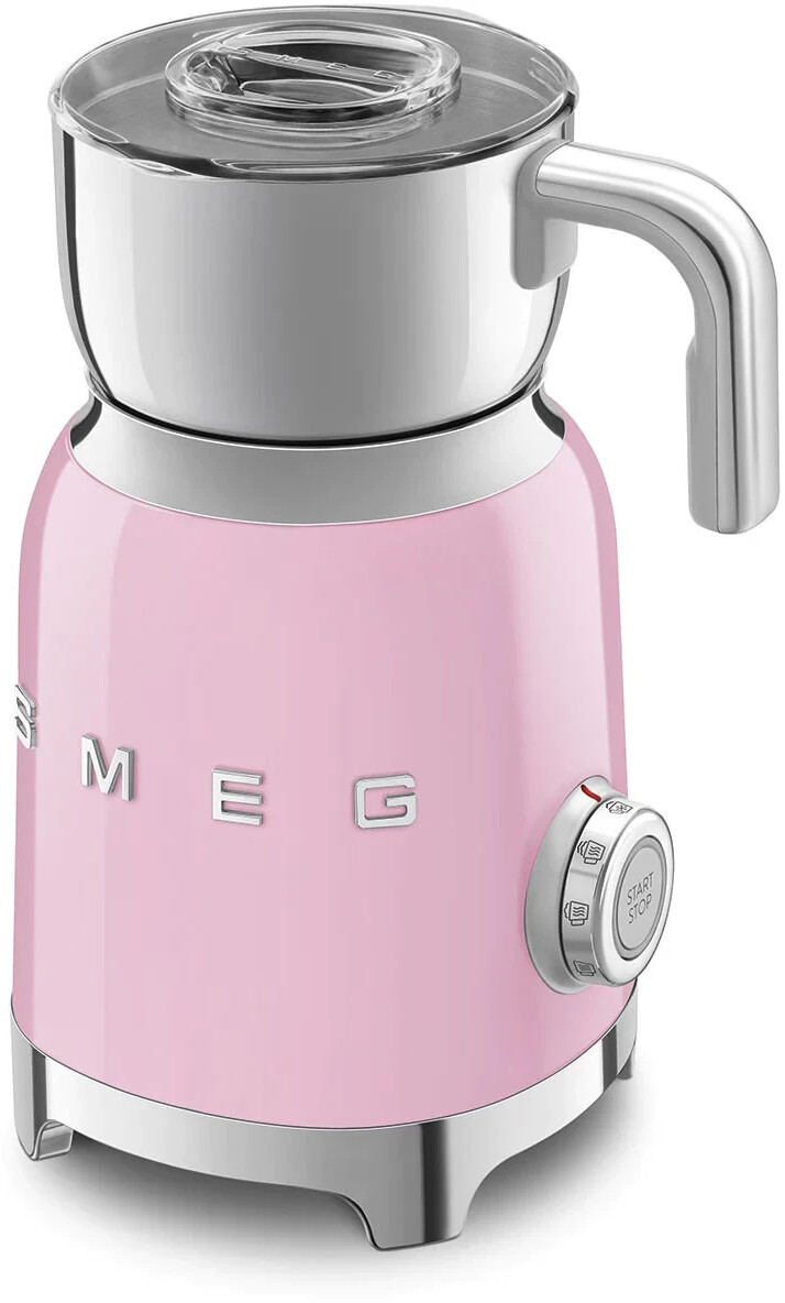 مدل MFF01 از برند اسمگ، یک کف شیر ساز تمام اتوماتیک با طراحی الهامگرفته از دهه ۵۰ میلادی است که در رنگ جذاب عرضه میشود. این دستگاه با توان ۵۰۰ وات، دارای ظرف داخلی استیل ضد زنگ با روکش نچسب، دو دیسک مجزا برای تهیه کف شیر یا همزدن ساده، و قابلیت انتخاب بین ۶ برنامه پیشفرض برای شیر داغ، کف شیر سرد یا گرم، شکلات داغ و حالت دستی است. استفاده از آن آسان، بیصدا و بسیار سریع است.