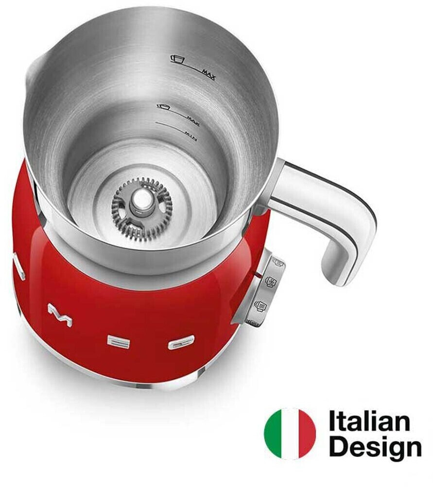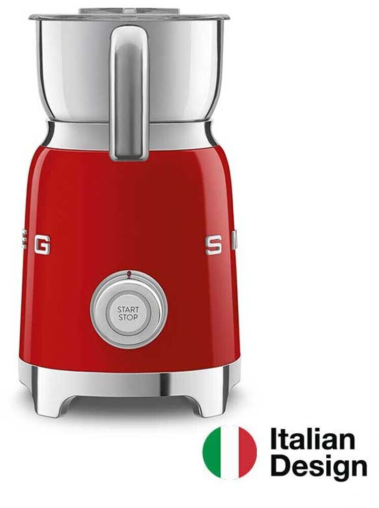 مدل MFF01 از برند اسمگ، یک کف شیر ساز تمام اتوماتیک با طراحی الهامگرفته از دهه ۵۰ میلادی است که در رنگ جذاب عرضه میشود. این دستگاه با توان ۵۰۰ وات، دارای ظرف داخلی استیل ضد زنگ با روکش نچسب، دو دیسک مجزا برای تهیه کف شیر یا همزدن ساده، و قابلیت انتخاب بین ۶ برنامه پیشفرض برای شیر داغ، کف شیر سرد یا گرم، شکلات داغ و حالت دستی است. استفاده از آن آسان، بیصدا و بسیار سریع است.