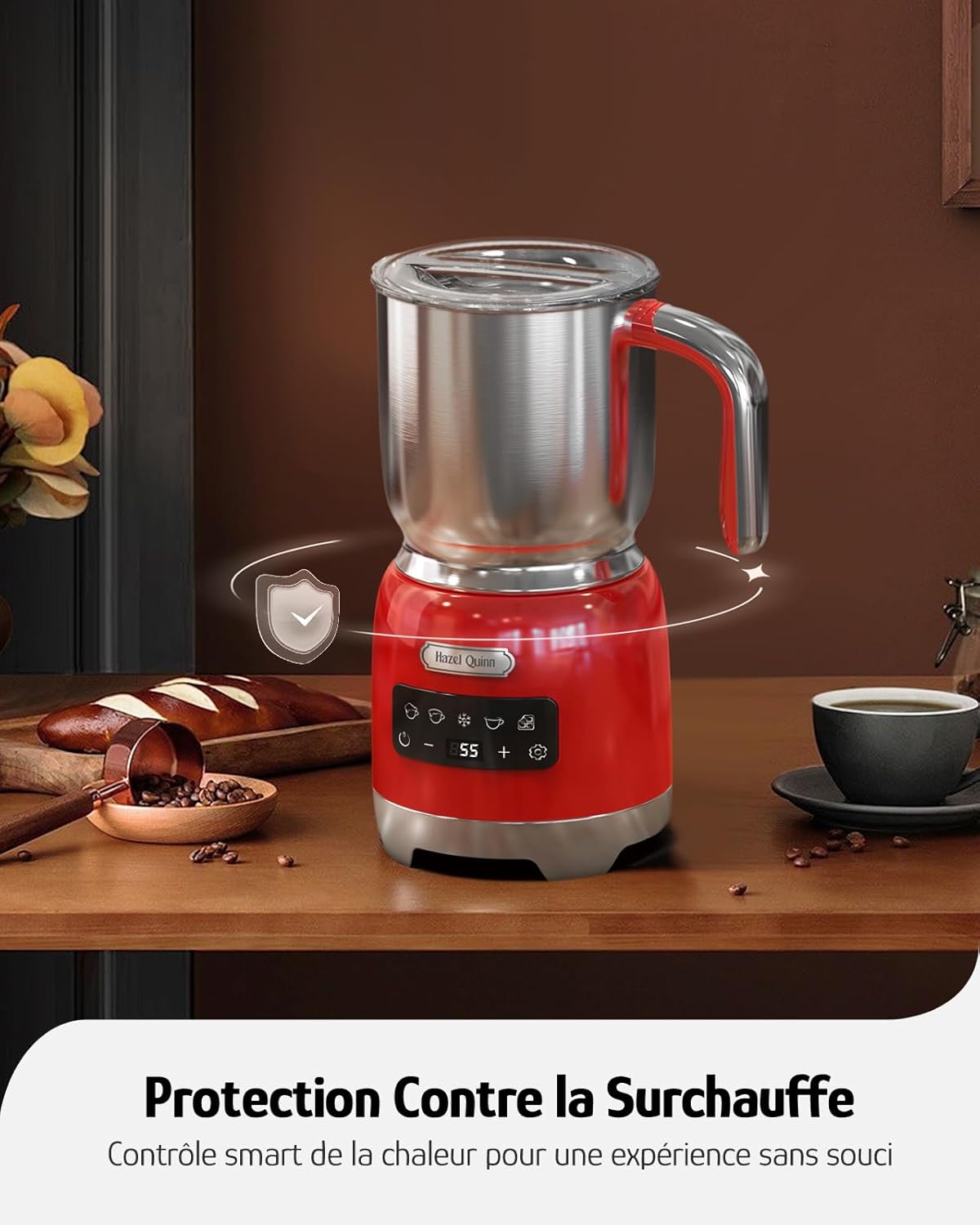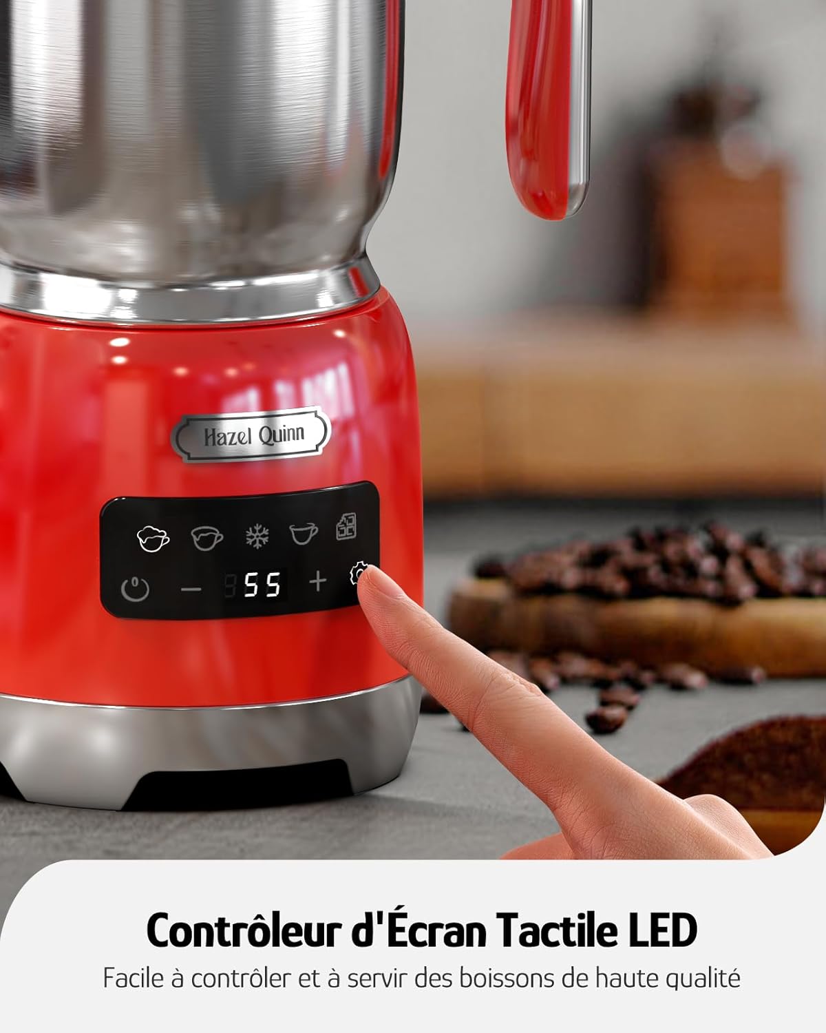 Hazel Quinn Milchaufschäumer, Abnehmbarer heißer und kalter Milchaufschäumer und Dampfer, 5-in-1 Funktionalität, einstellbare Temperatur und Dicke, LED-Touch-Steuerung, Spülmaschinenfest, Rot | قیمت یورویی 70.99€