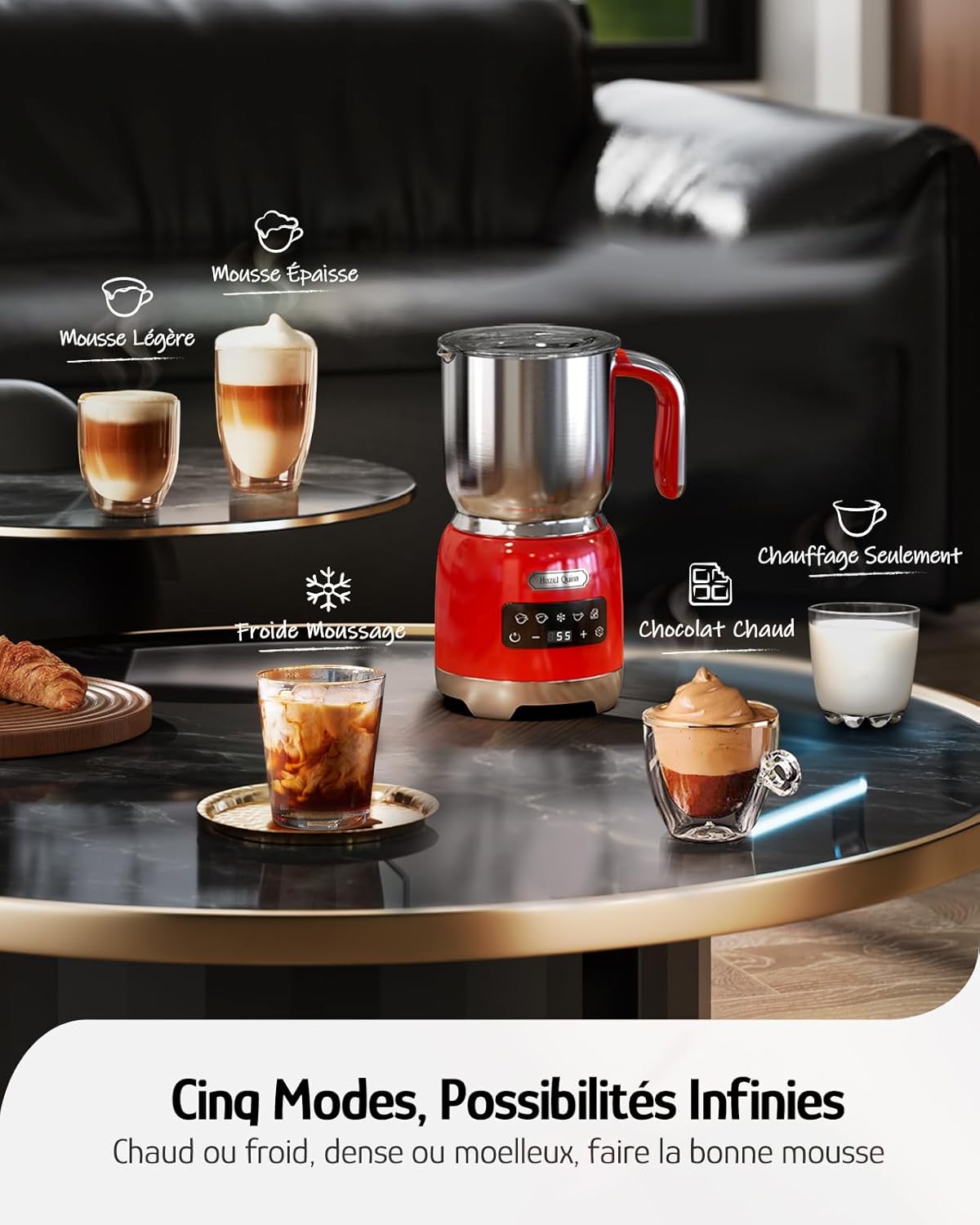 کف کننده شیر Hazel Quinn، بخارساز و بخارپز سرد و گرم، عملکرد 5 در 1، دما و ضخامت قابل تنظیم، کنترل لمسی LED، قابل شستشو در ماشین ظرفشویی، قرمز