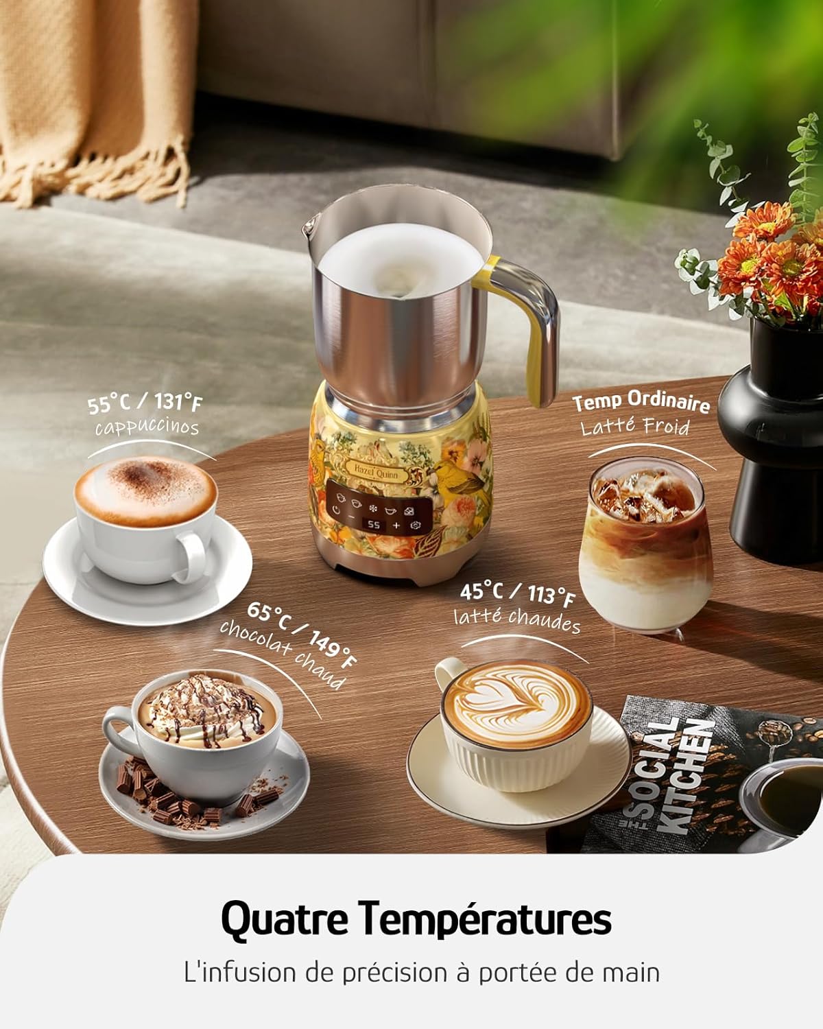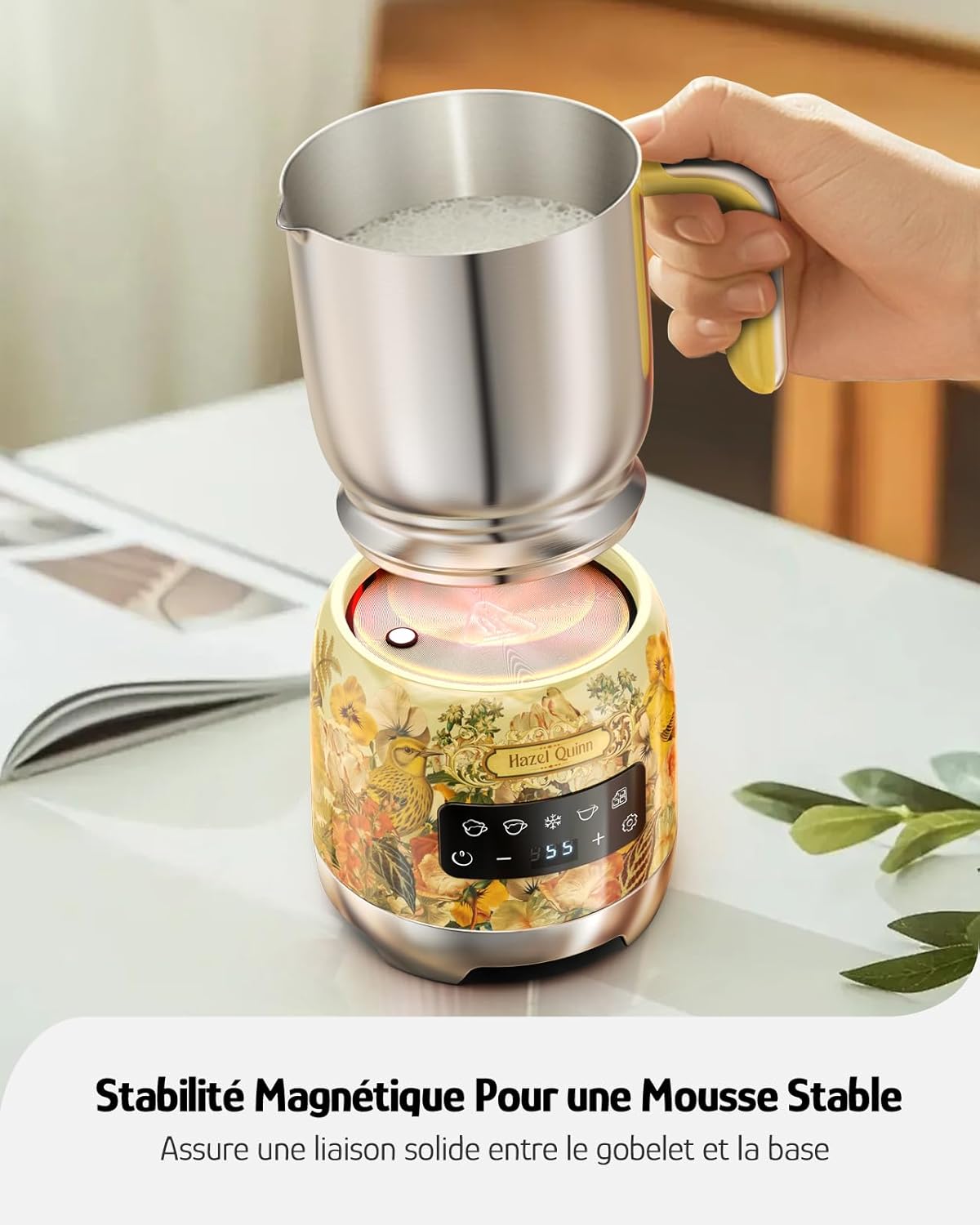 Hazel Quinn Milchaufschäumer, Abnehmbarer heißer und kalter Milchaufschäumer und Dampfer, 5-in-1 Funktionalität, einstellbare Temperatur und Dicke, LED-Touch-Steuerung, spülmaschinenfest, Gelb | قیمت یورویی 75.99€