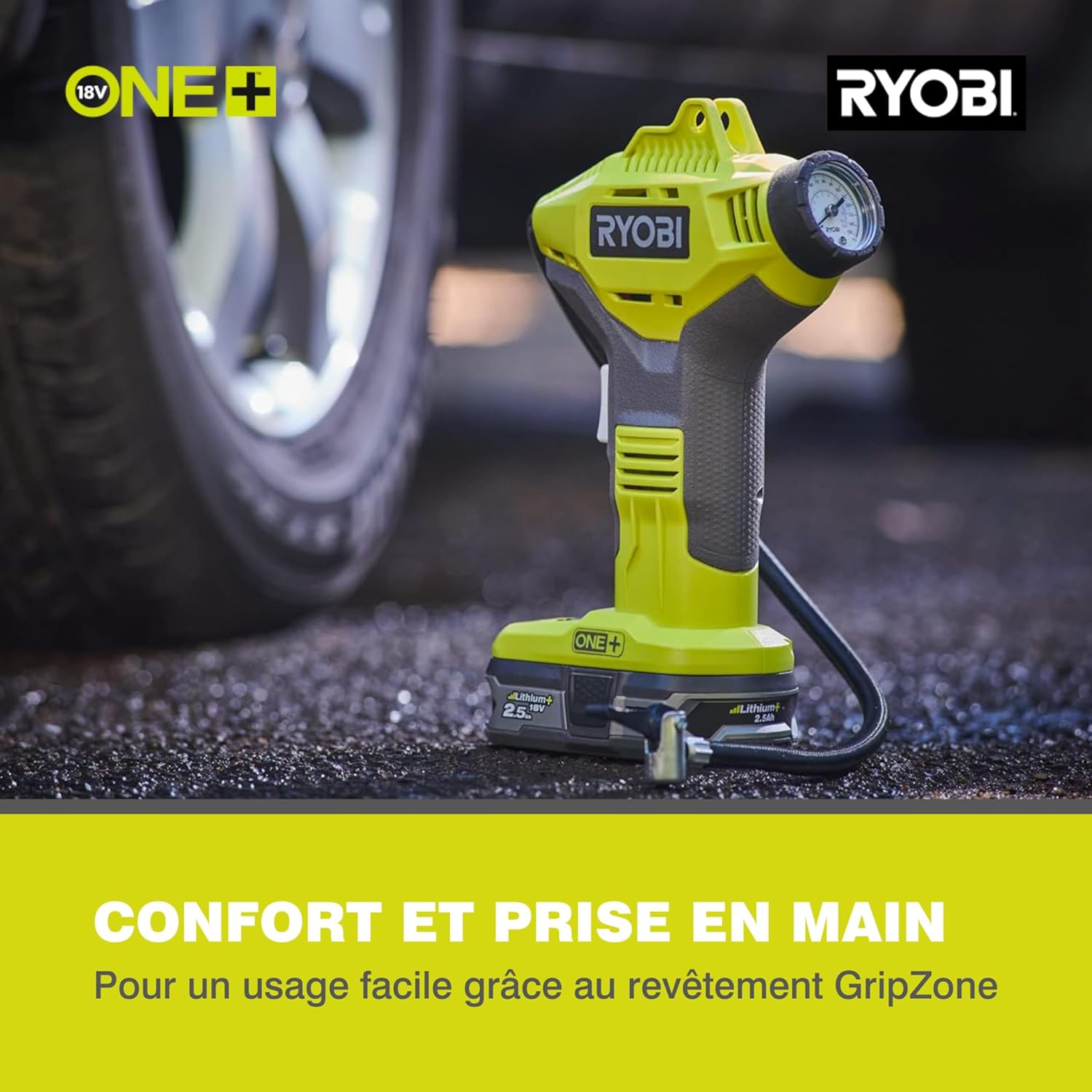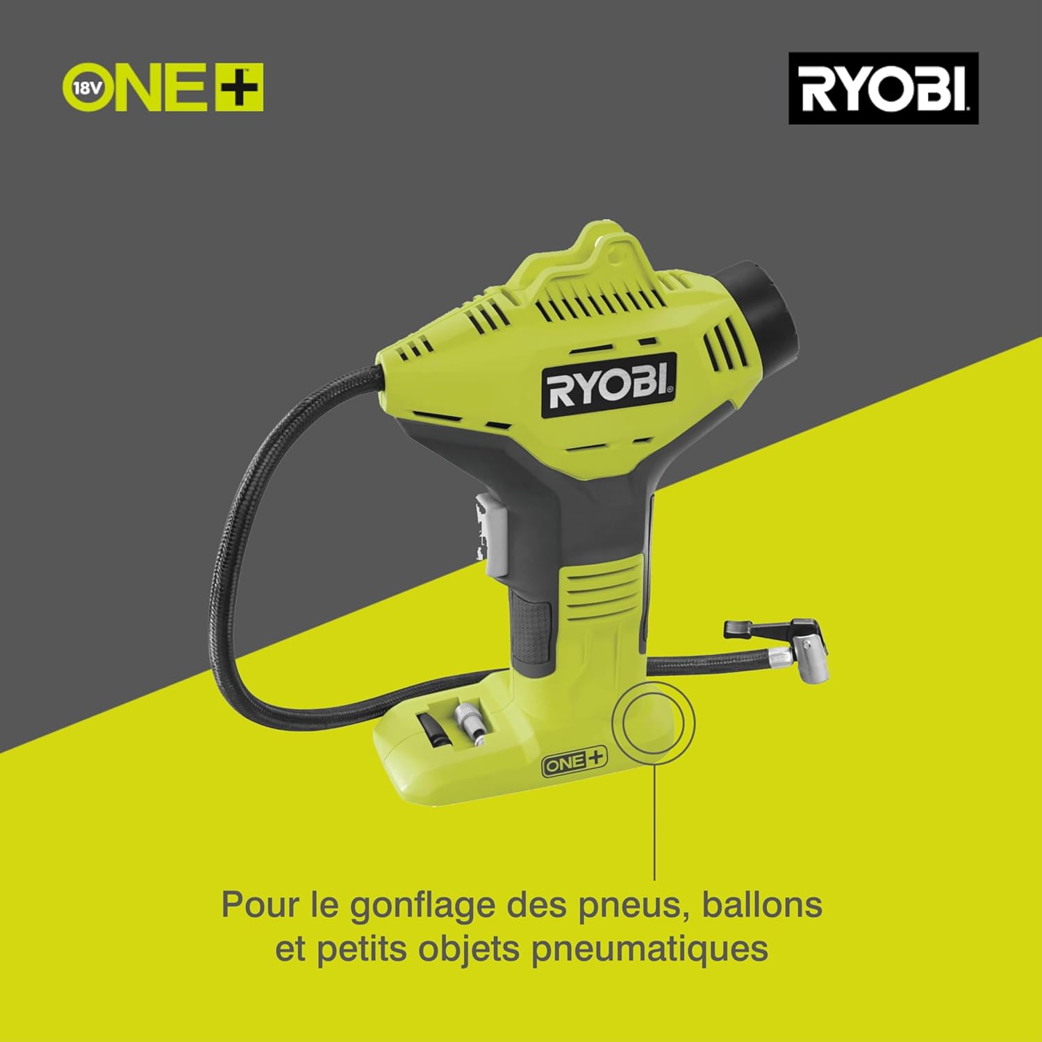 کمپرسور دستی بی سیم RYOBI 18 V ONE+ R18PI-0 (حداکثر فشار 10.3 بار، شلنگ هوای فشرده 50 سانتی متر، بدون باتری و شارژر)