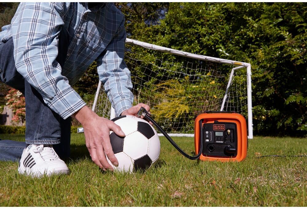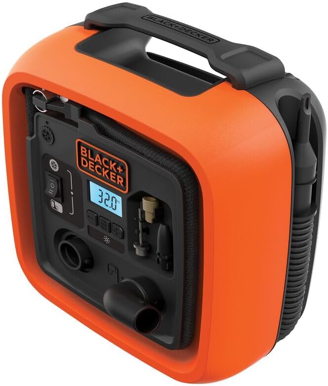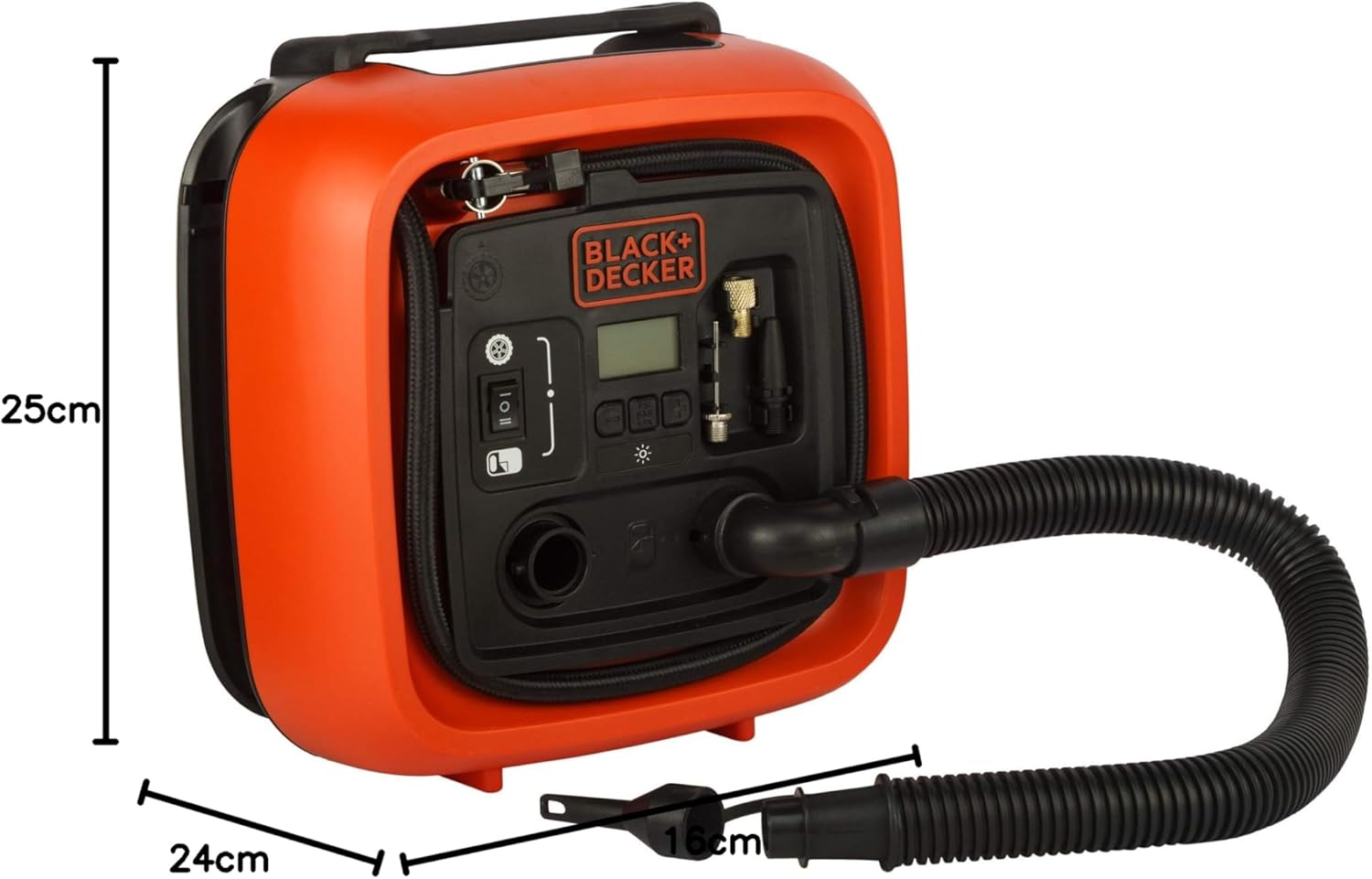 Black+Decker 11.0 Bar/12V-Kompressor/ Luftpumpe, 160PSI, für Reifen, Bälle, Rollstühle, Etc., mit 2 Betriebsarten und Abpump-Modus, ASI400, 12 V | قیمت یورویی 49.99€