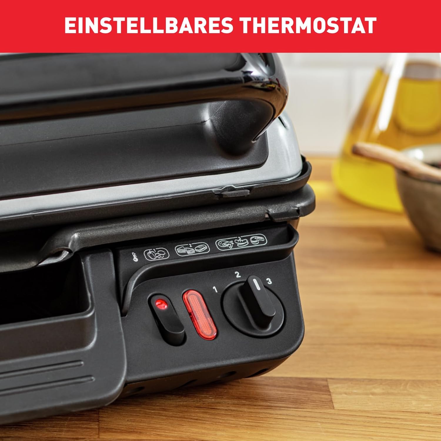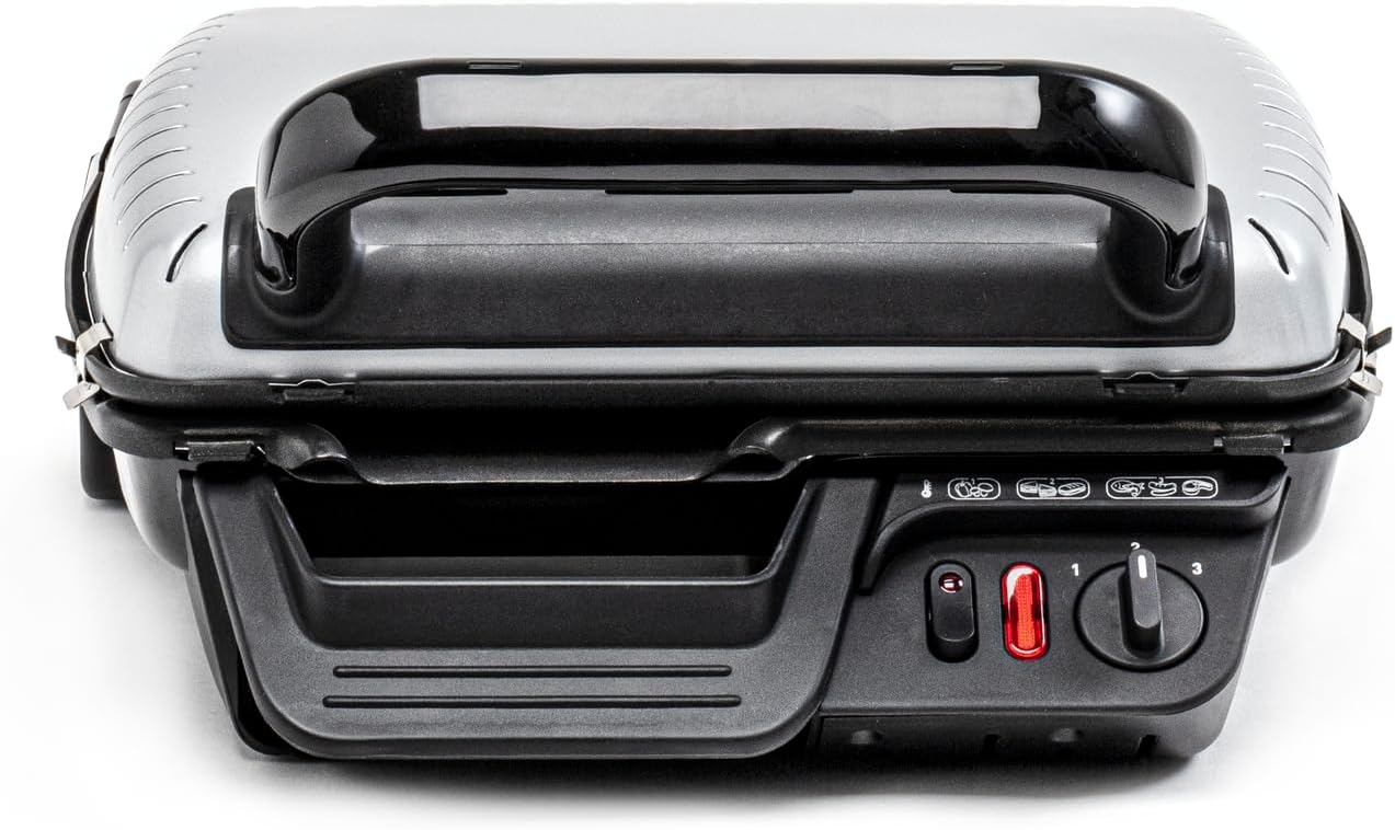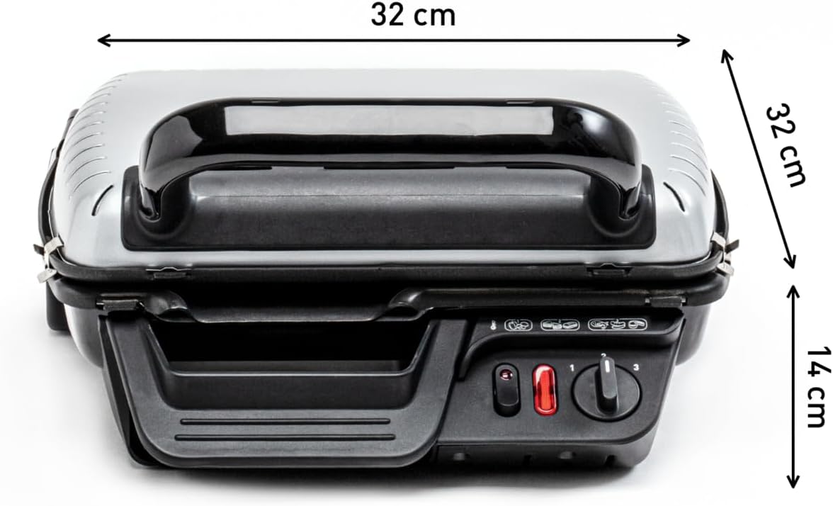 کنتاکت گریل تفال GC3060 3in1 | با عملکرد overbaking | سطح کباب پز دوتایی هنگام باز شدن به عنوان گریل رومیزی/BBQ | ساندویچ، استیک، پانینی | ترموستات قابل تنظیم | روکش نچسب | تک رنگ خاکستری با عملکرد پخت