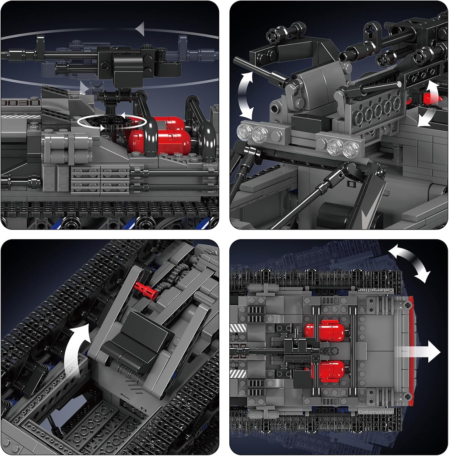 Mould King 20030 Technologische Militärserie EV2 Geländegängiger Raupenpanzer mit Fernbedienung, ausgestattet mit 5.0 Hochleistungs-Strommodul, integriertem Akku, Gyroskop-Unterstützungsdesign, Vorwärts- und Rückwärtsbewegung ohne Abweichung, mit echtem simuliertem Sound, kompatibel mit Zubehör von allen Marken. Schaffen Sie eine große militärische Szene. 【Flexible Doppelsteuerung】Dieses Panzerbaukasten-Kit wird von einer 2,4-GHz-Fernbedienung (maximale Entfernung 20 m) und einer speziellen APP gesteuert. Die APP bietet Fernsteuerungsmodus, Pfadsteuerungsmodus, Sprachsteuerungsmodus, Kreiselmodus und MINT-Programmiermodus. Sie können das Panzerspielzeug ganz einfach so steuern, dass es sich in alle Richtungen bewegt oder auf einer ebenen Fläche um 360 Grad dreht 【Lernspielzeug für Bauwissenschaften】 Das Spielzeugset enthält viele Bausteine, alle Komponenten sind sortiert und sorgfältig verpackt, damit sie nicht verloren gehen. Eine Montageanleitung ist enthalten, sodass Sie mit jedem Schritt beginnen können. Kompatibel mit den meisten ähnlichen Bausteinen auf dem Markt, mit starker Skalierbarkeit. Das beste Heimlernspiel für alle. Es wird eine großartige Eltern-Kind-Zeit sein, um mit den Kindern zu spielen. 【Automodellbausatz für Kinder und Erwachsene】 Dieser Bausatz ist ein Spielzeug für Jungen und Mädchen zum Valentinstag/Geburtstag/Vatertag, insbesondere für Kinder, Jugendliche, Erwachsene ab 8, 9, 10, 12, 14 Jahren und älter. Speziell für Truck-Fans und -Liebhaber. 【Kundendienst】: Jedes einzelne unserer Produkte wird von einer Maschine aufgenommen, und die Verpackung wird erst bestätigt, wenn drei Tests durchgeführt wurden. Wenn Ihrem Bausatz noch Teile fehlen, kontaktieren Sie uns bitte. vielen Dank im Voraus. | قیمت یورویی : 55.25€