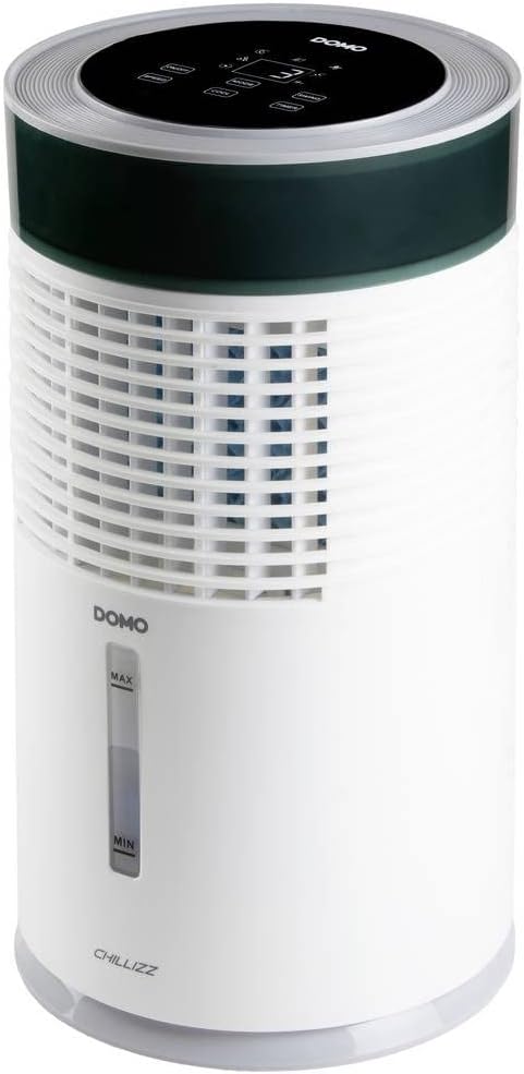 DOMO DO159A Luftkühler Desktop "Chillizz" لینک آمازون : https://www.amazon.de/dp/B0BBH4YBRS?th=1&psc=1 دستگاه چند منظوره: خنک کننده هوا (هوای سرد)، پنکه و رطوبت ساز سیستم تصفیه هوا که هوا را تمیز و عاری از گرد و غبار میکند راندمان خنککنندگی بالا به لطف غشای خنککننده لانه زنبوری مخزن آب ۱۰۰٪ قابل جدا شدن با حجم ۱.۸ لیتر ظرفیت (زمان استفاده +/- ۹ ساعت) و پنجره مشاهده پنل کنترل با روشنایی LED برای سهولت در کار ۳ حالت تهویه: نرمال - طبیعی - حالت خواب 6 سرعت برای فن تایمر تا ۸ ساعت حرکت چرخشی، هوای خنک را تا زاویه ۸۰ درجه پخش میکند؛ ۹.۶ وات