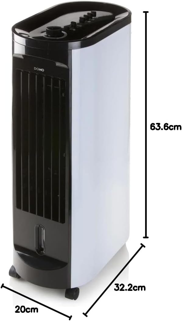 DOMO DO156A Mobiler Luftkühler 3-in-1 mit 4 L Wassertank لینک آمازون : https://www.amazon.de/dp/B07ND274FC?th=1&psc=1 دستگاه چند منظوره: خنک کننده هوا (هوای سرد)، پنکه و رطوبت ساز راندمان خنککنندگی بالا به لطف غشای خنککننده لانه زنبوری: ۳۰۰ متر مکعب در ساعت مخزن آب با ظرفیت ۴ لیتر ظرفیت و پنجره مشاهده تایمر تا ۲ ساعت (۱۲۰ دقیقه) ۳ سرعت (کم - متوسط - زیاد) سیستم فیلتر هوا با یونهای منفی حرکت چرخشی باعث پخش هوای خنک میشود سیستم فیلتر قابل شستشو با کیفیت بالا چرخ و دسته برای جابجایی آسان؛ ۲۳۰ ولت - ۵۰ هرتز - ۷۰ وات